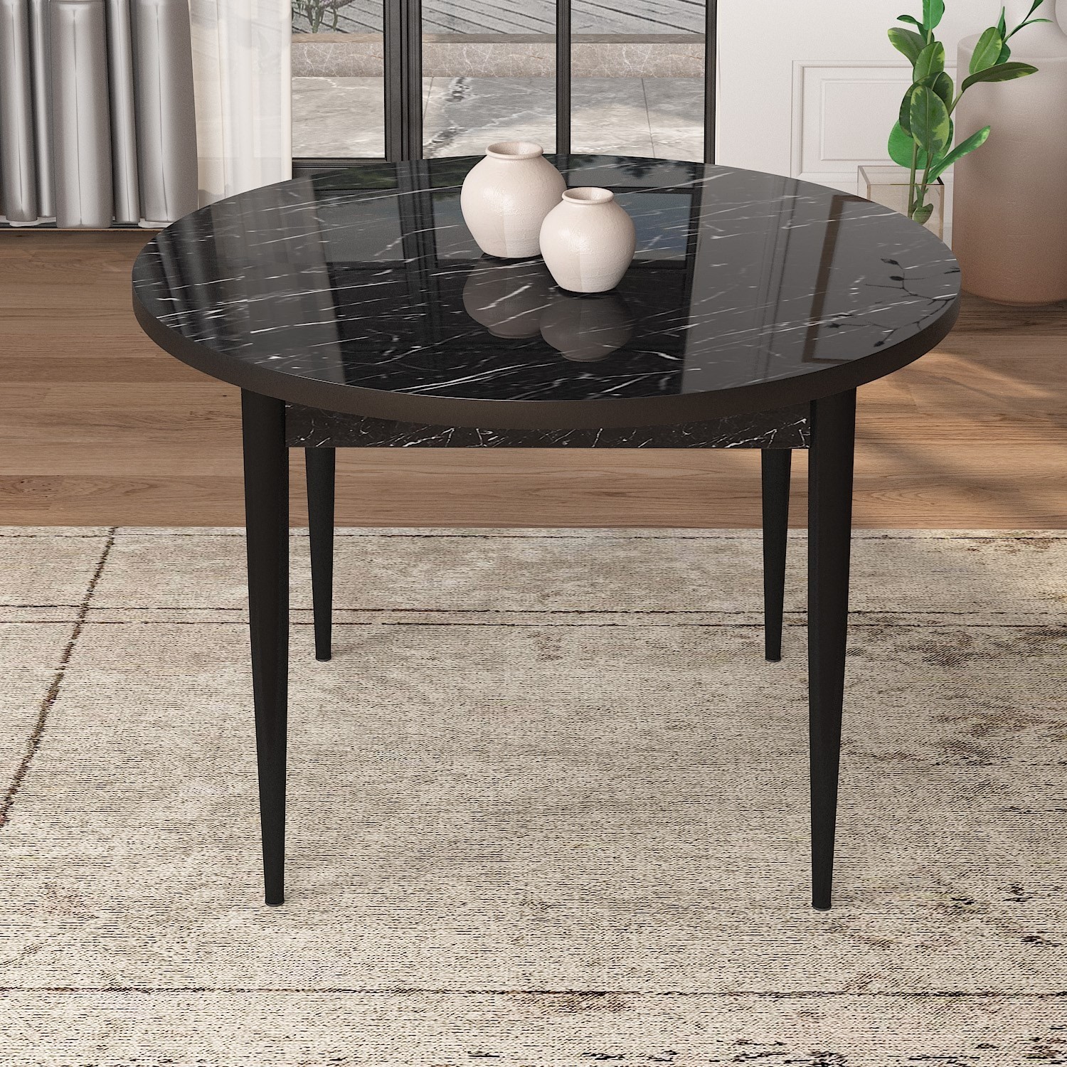 Canisa Concept Tor Serisi, Yuvarlak Mutfak Masa Takımı, Siyah Mermer Desen Masa ve 4 Sandalye