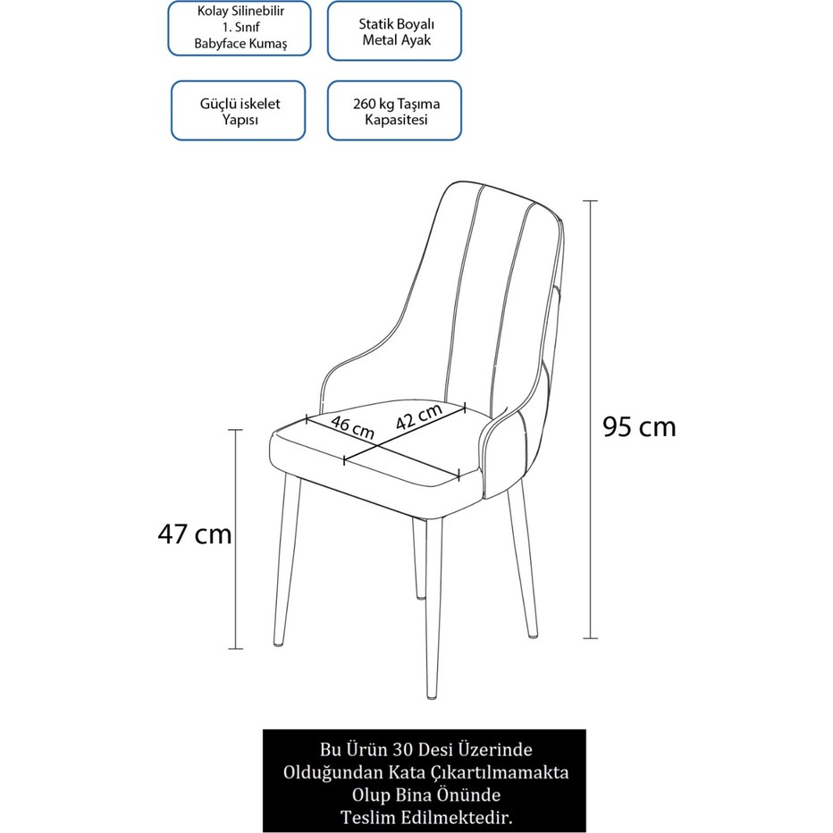 SANDALYELER 240 KG KADAR TAŞIMA KAPASİTESİ İLE ÇOK SAĞLAM İSKELET YAPISINA SAHİPTİR.