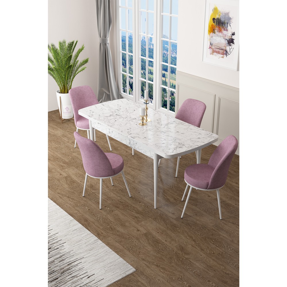Canisa Concept Zen Serisi Mdf Açılabilir Mutfak Masası Takımı ,beyaz Mermer Desen Masa + 4 Adet Sandalye