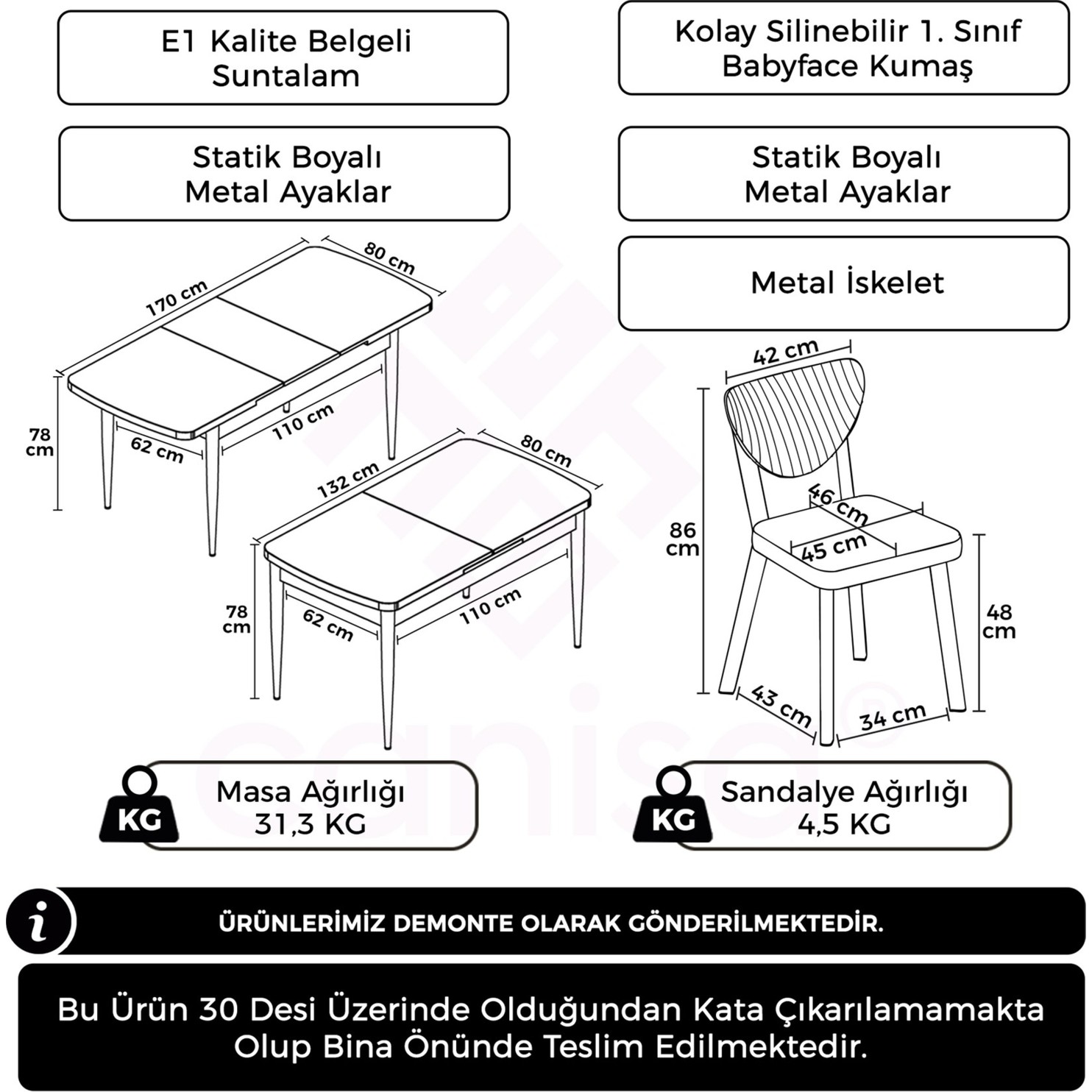 EXVE SERİSİ 80X132 AÇILABİLİR MUTFAK MASASI TAKIMI