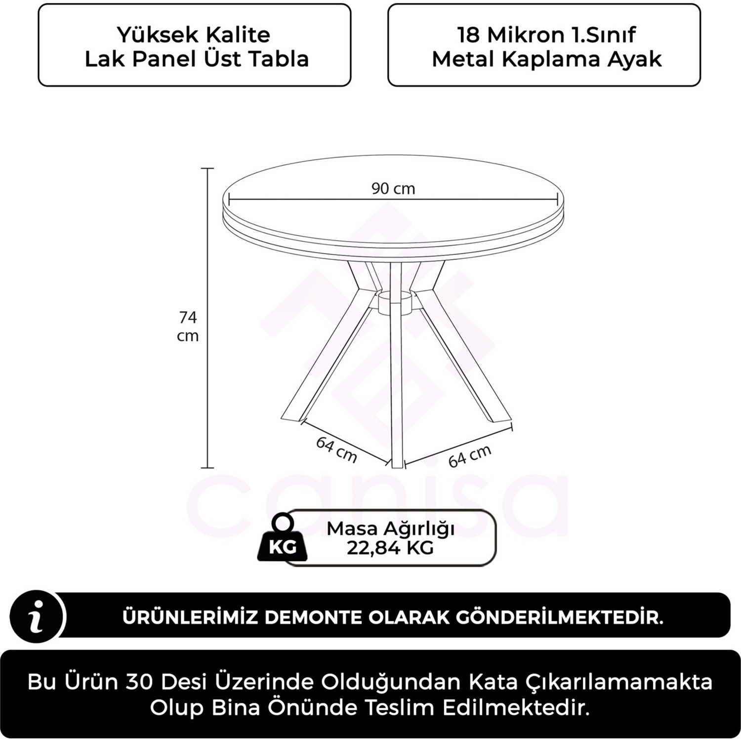 Canisa Mos Serisi 90X90 Lak Panel Beyaz Mermer Desen Krom Kaplama Ayaklı Mutfak Masası
