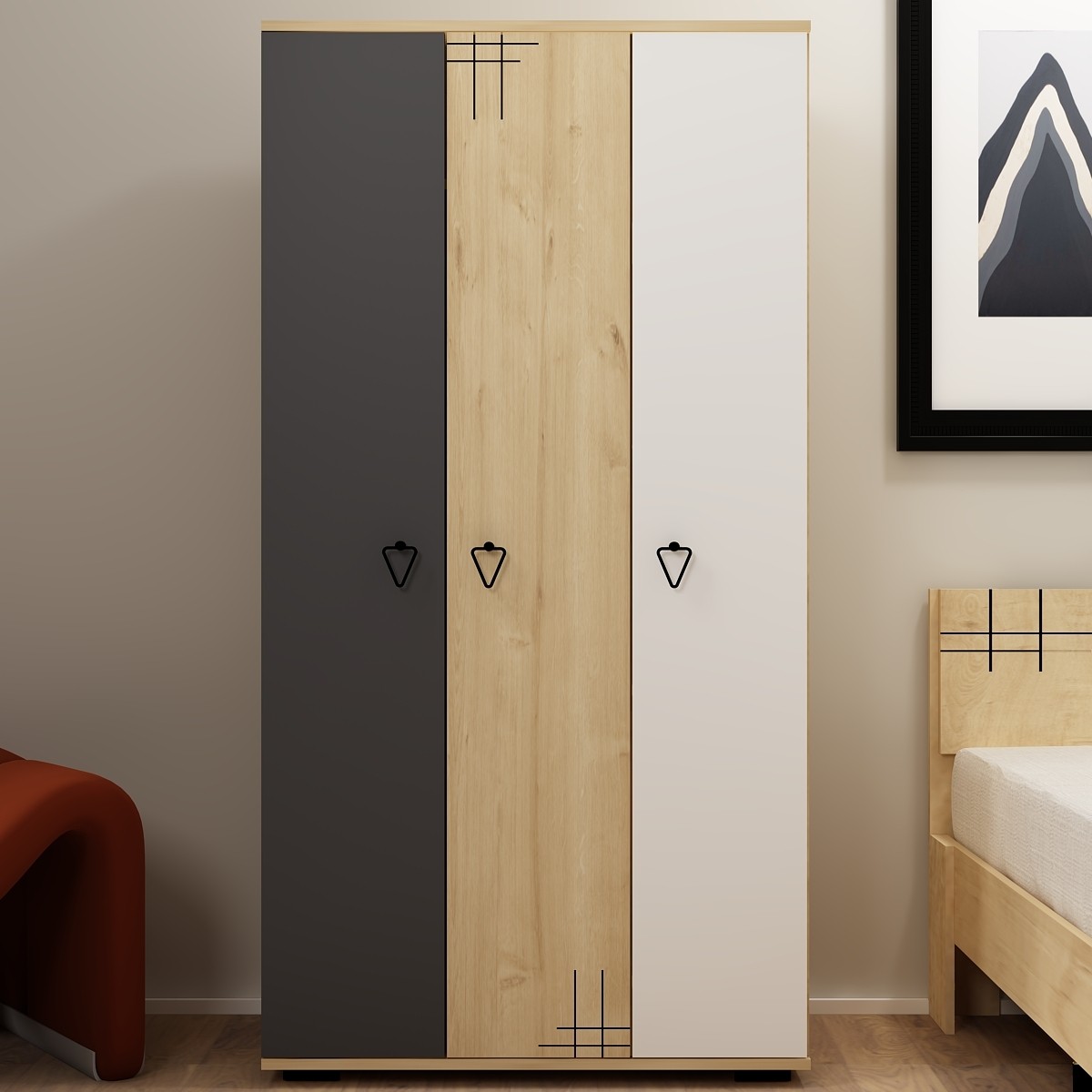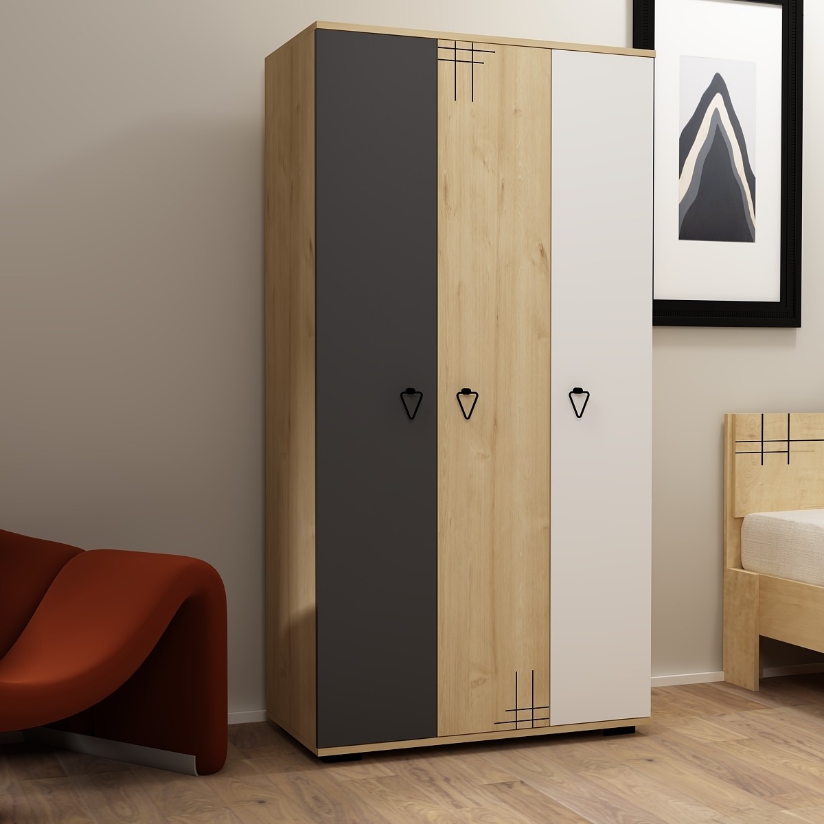 Cantek Dizayn ARYACT(C) 3 KAPAKLI GARDIROP ve ÇOK AMAÇLI DOLAP SAFİRMEŞE-ANTRASİT-BEYAZ