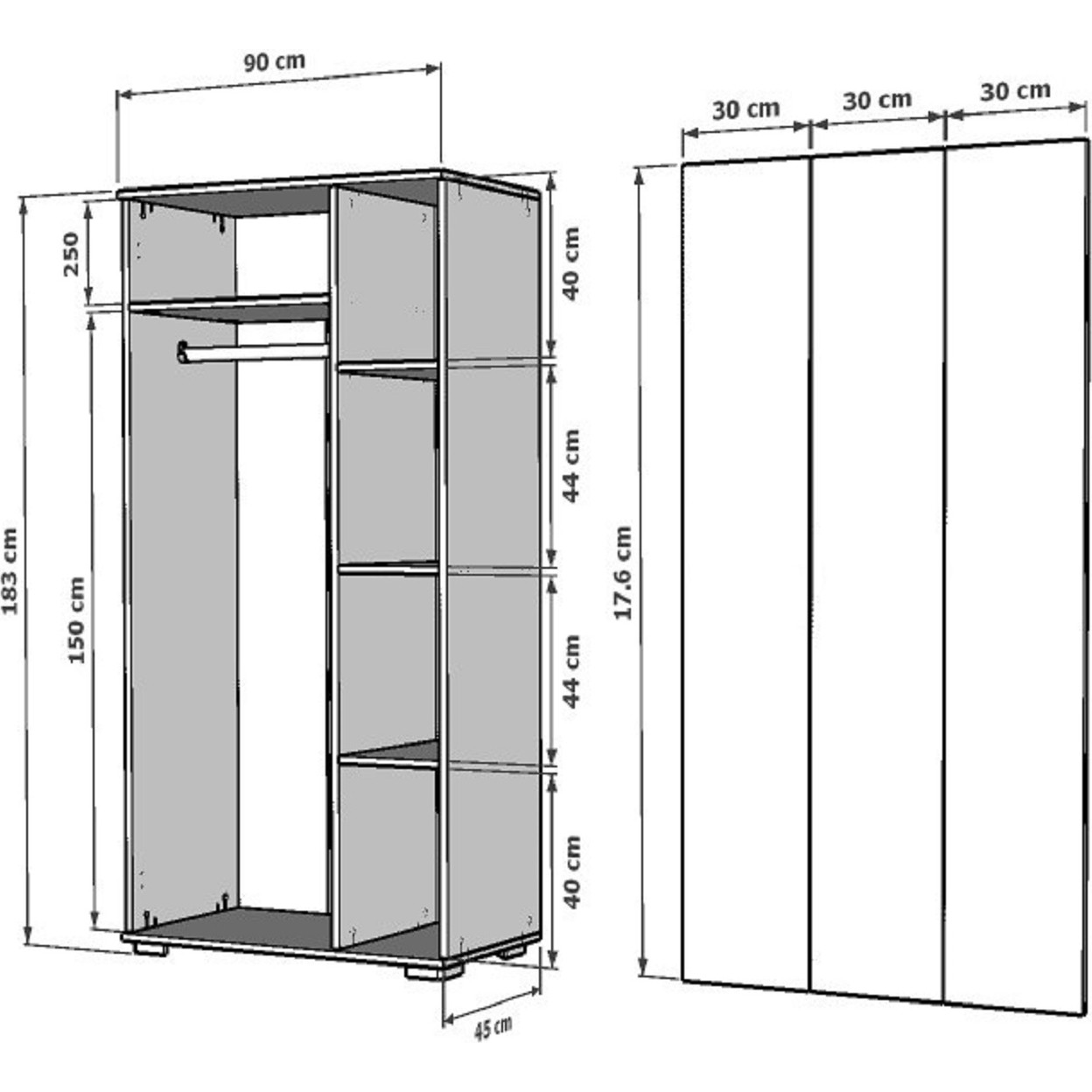 Genişlik x derinlik x yükseklik = 90 x 45 x 183 cm .