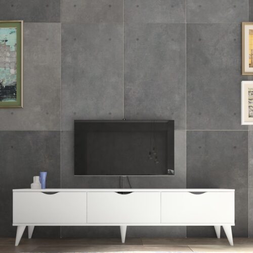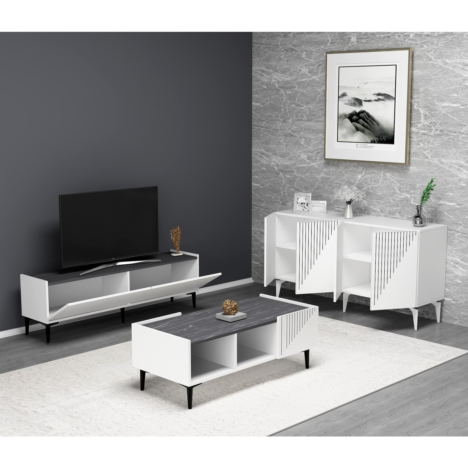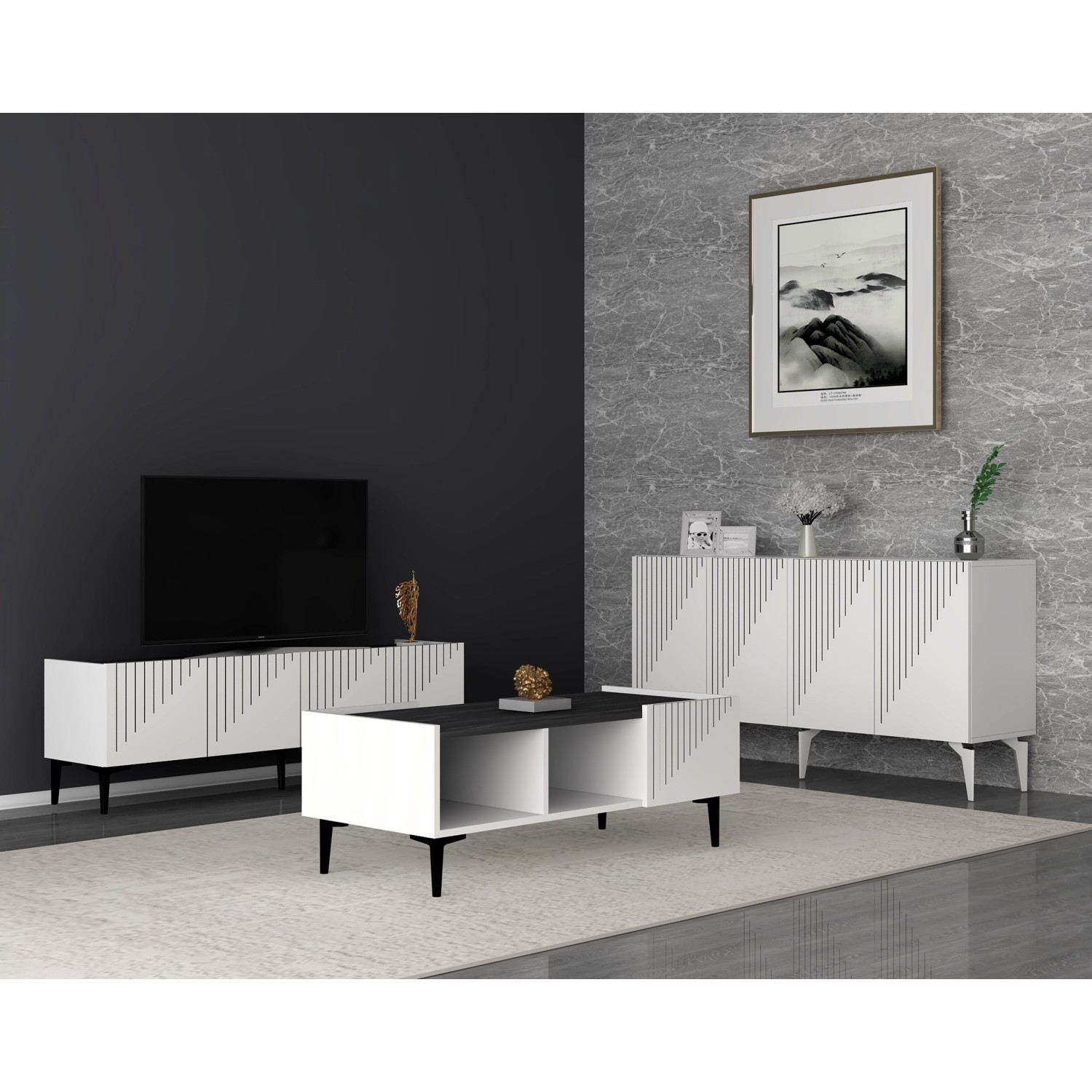 Cantek Dizayn Draw Tv Sehpası Konsol ve Orta Sehpa 3’lü Salon Takımı Beyaz- Royalmermer