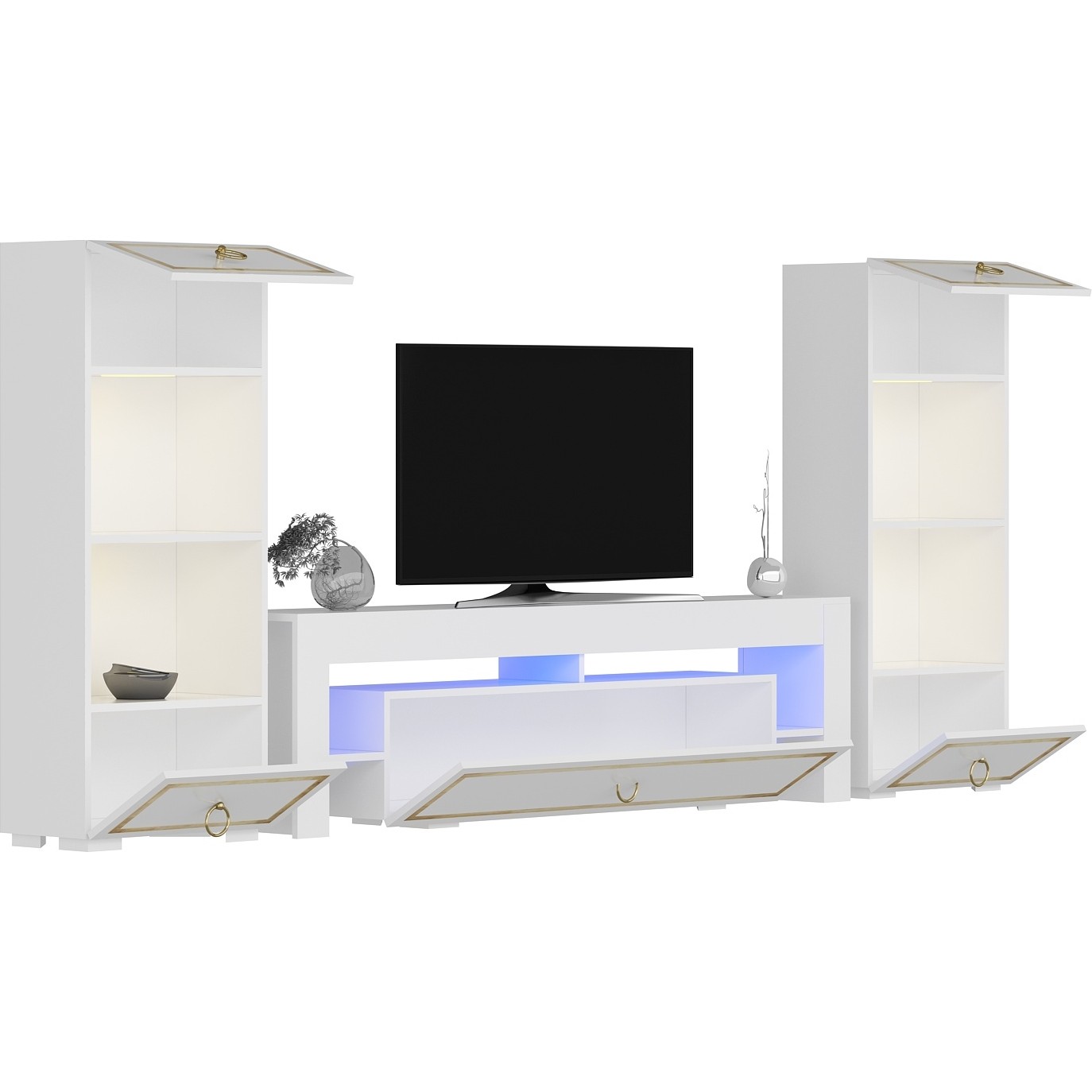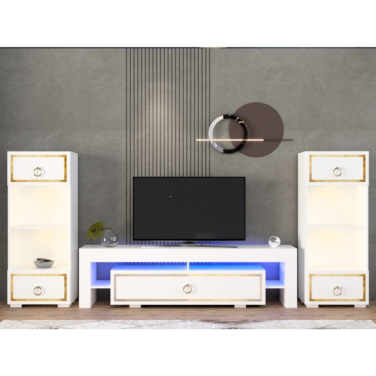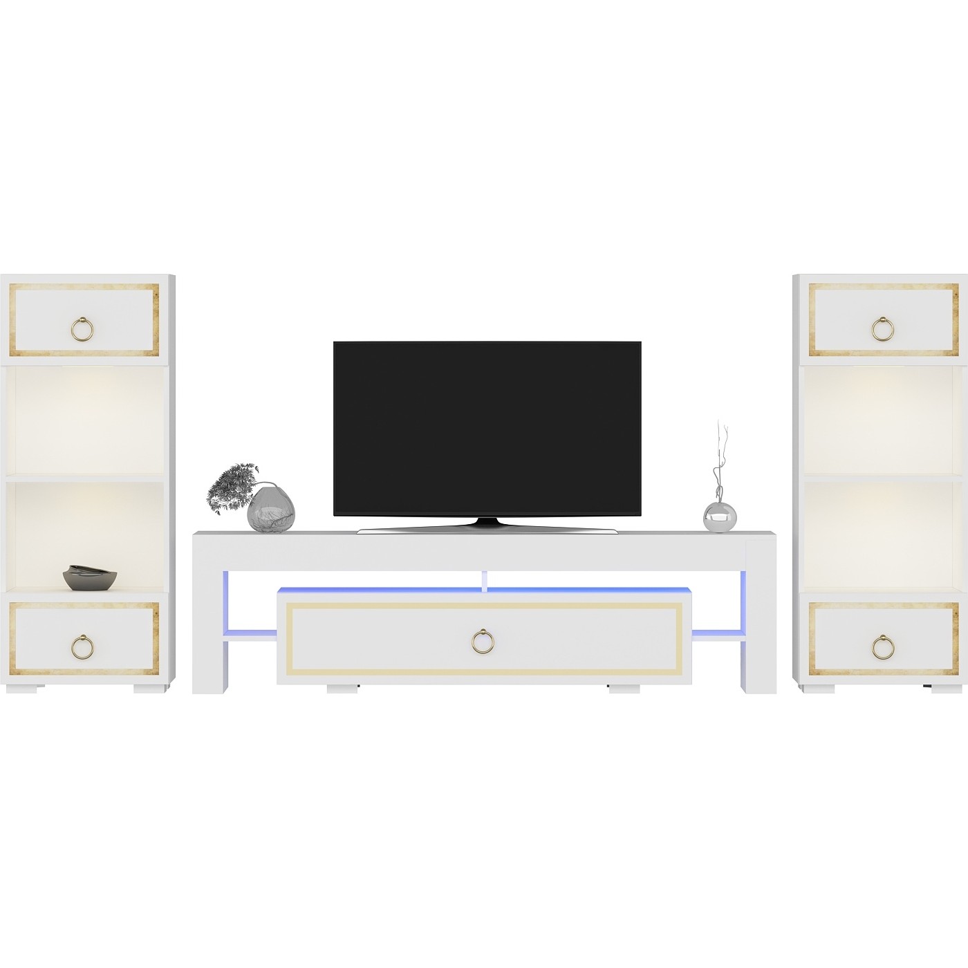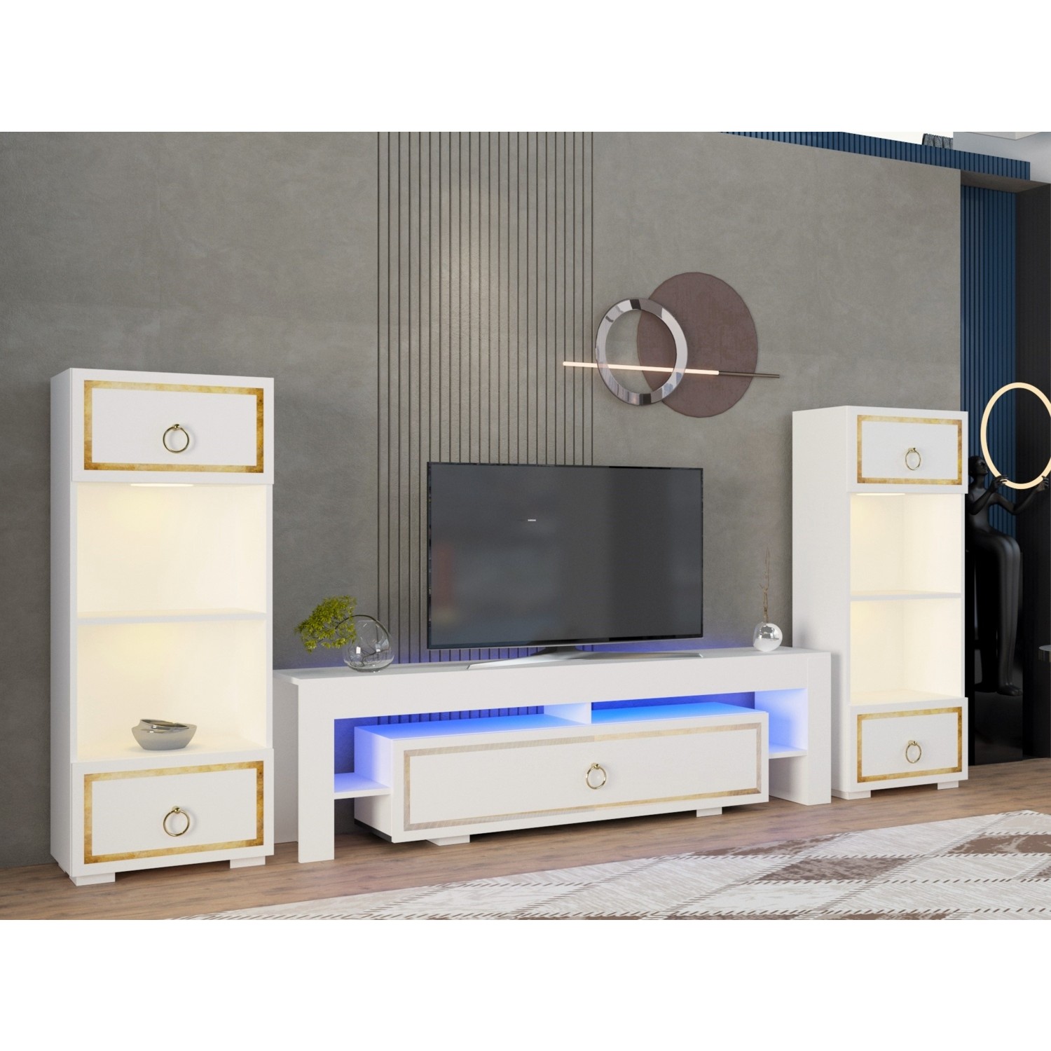 Cantek Dizayn Lissa Kitaplık, Tv Sehpası Takımı Beyaz-Altın
