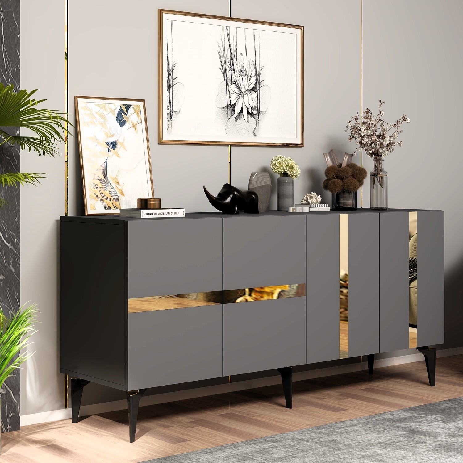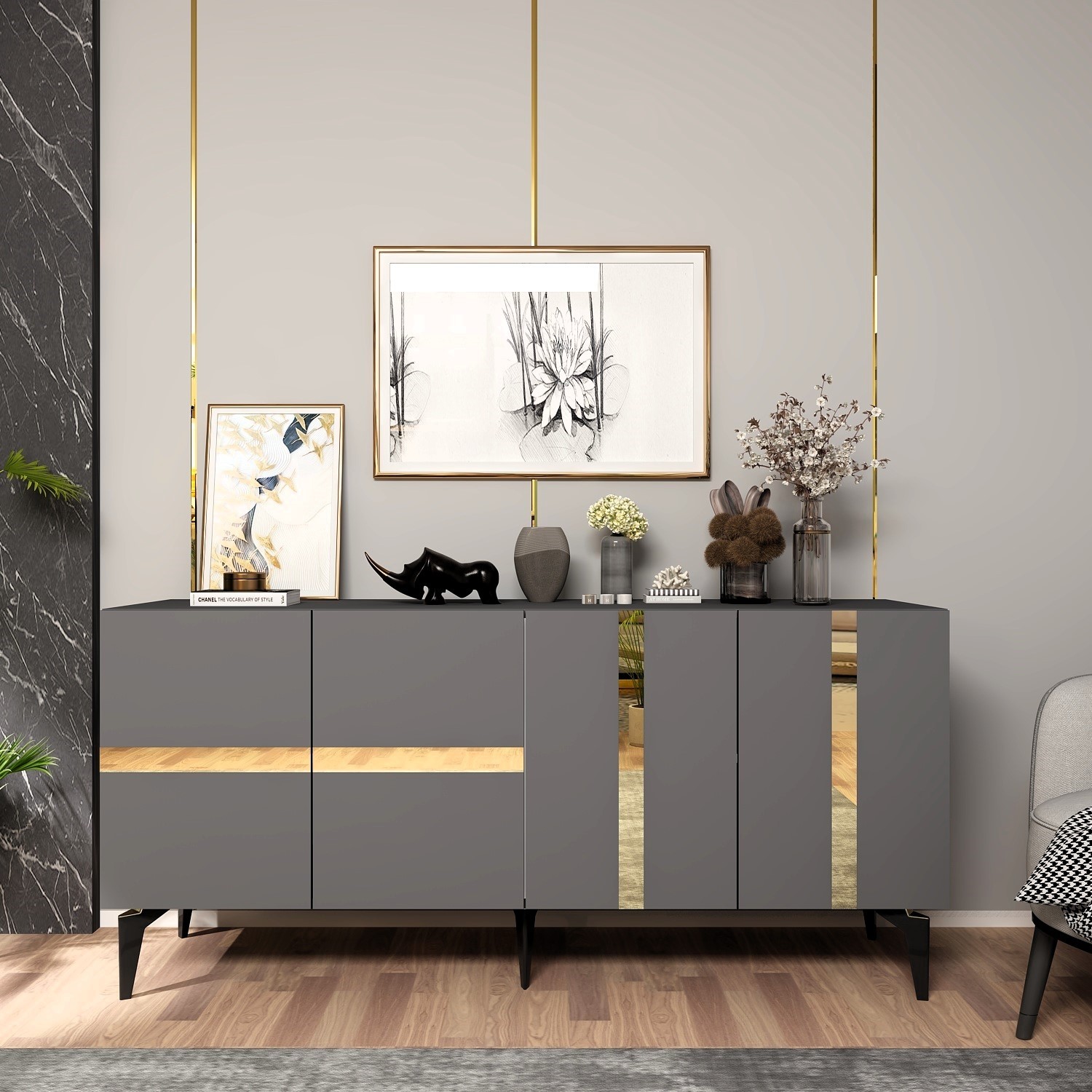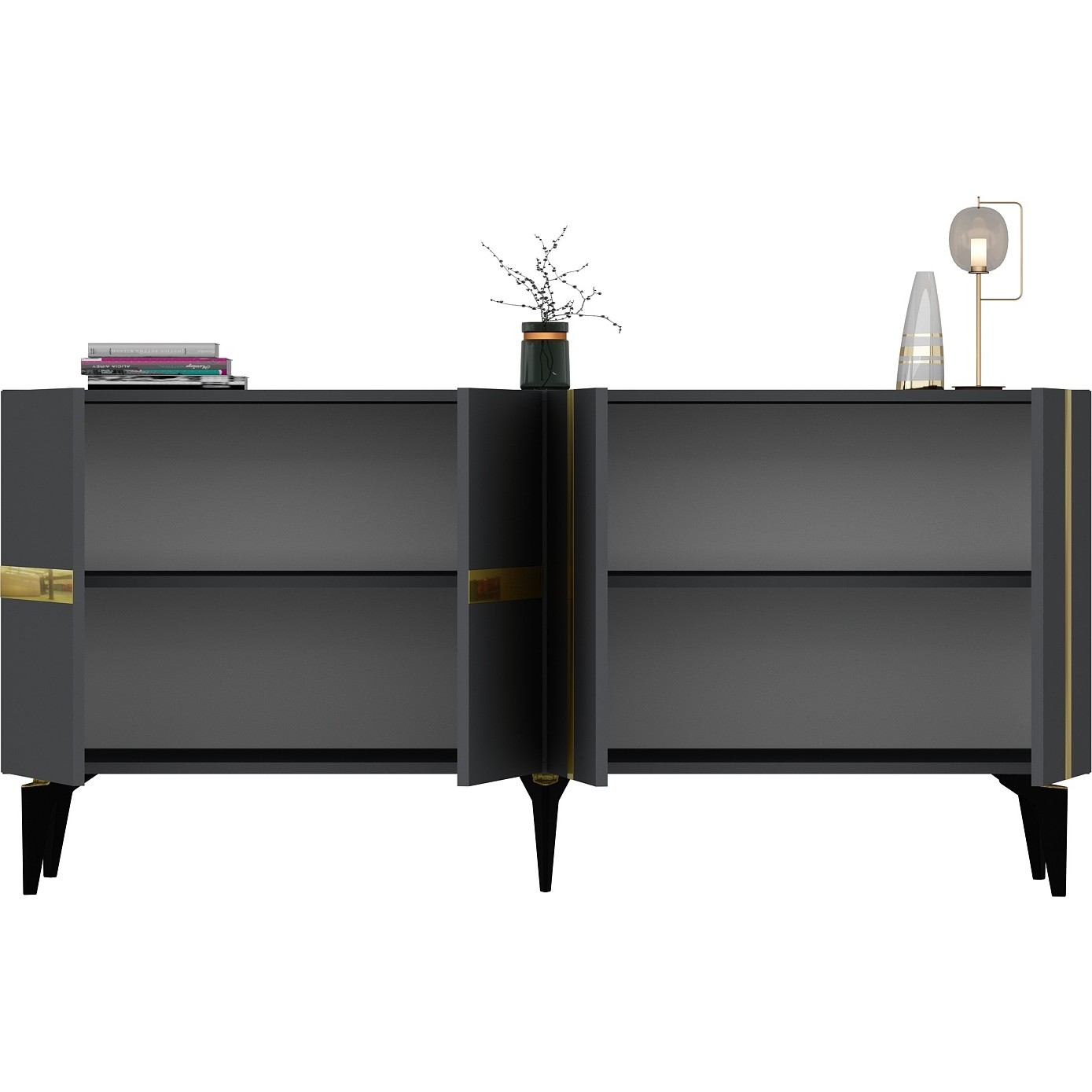 Cantek Dizayn Vannia Konsol 4 Kapaklı Antrasit-Altın