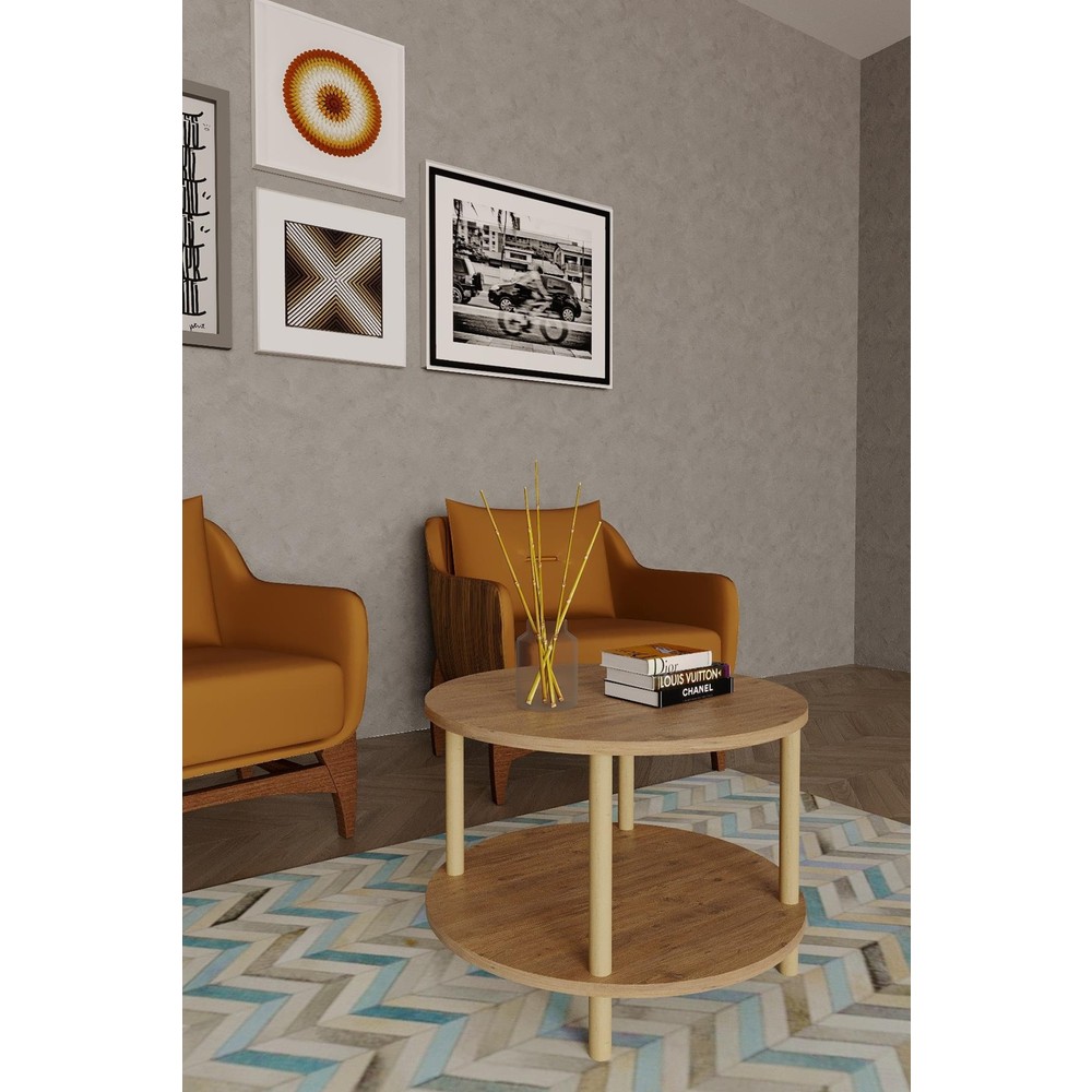 Çift Katlı Yuvarlak Orta Sehpa 60X60 | Modern Ahşap & Beyaz Seçenek