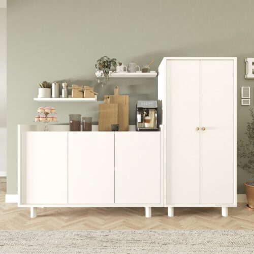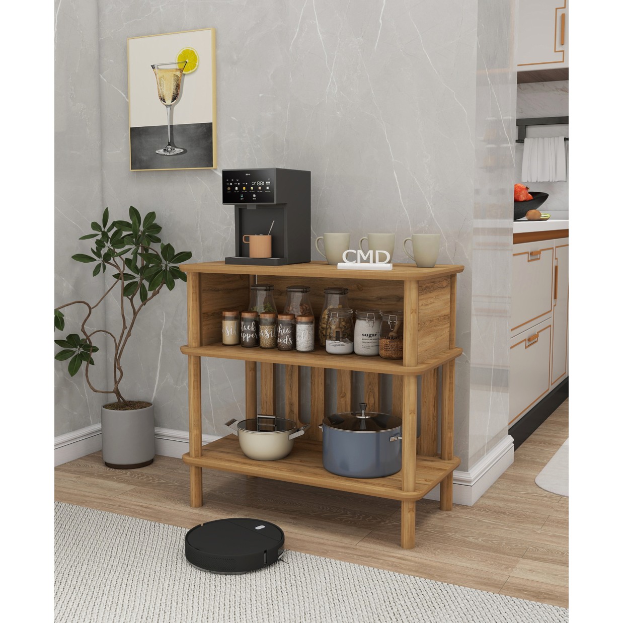 3 raflı dolap: geniş depolama alanı sayesinde kahve makinesi, fincanlar, mutfak eşyaları ve dekoratif objeler için idealdir.