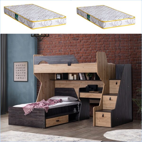 Setay Litera Ranza Dolap Masa + 1 Adet Comfort Yatak, Koyu Ceviz/Beyaz