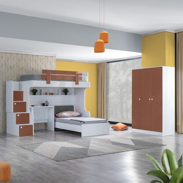 Setay Loof Ranza Karyola Masa + 3 Kapaklı Dolap, Kahverengi