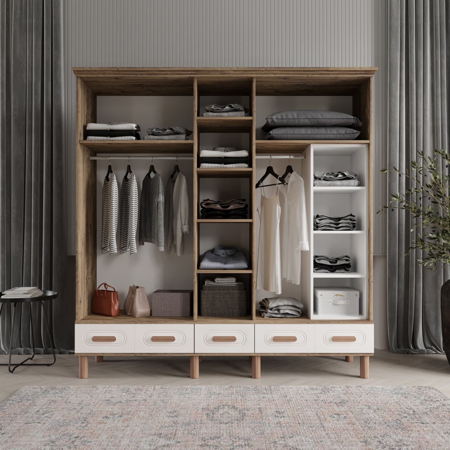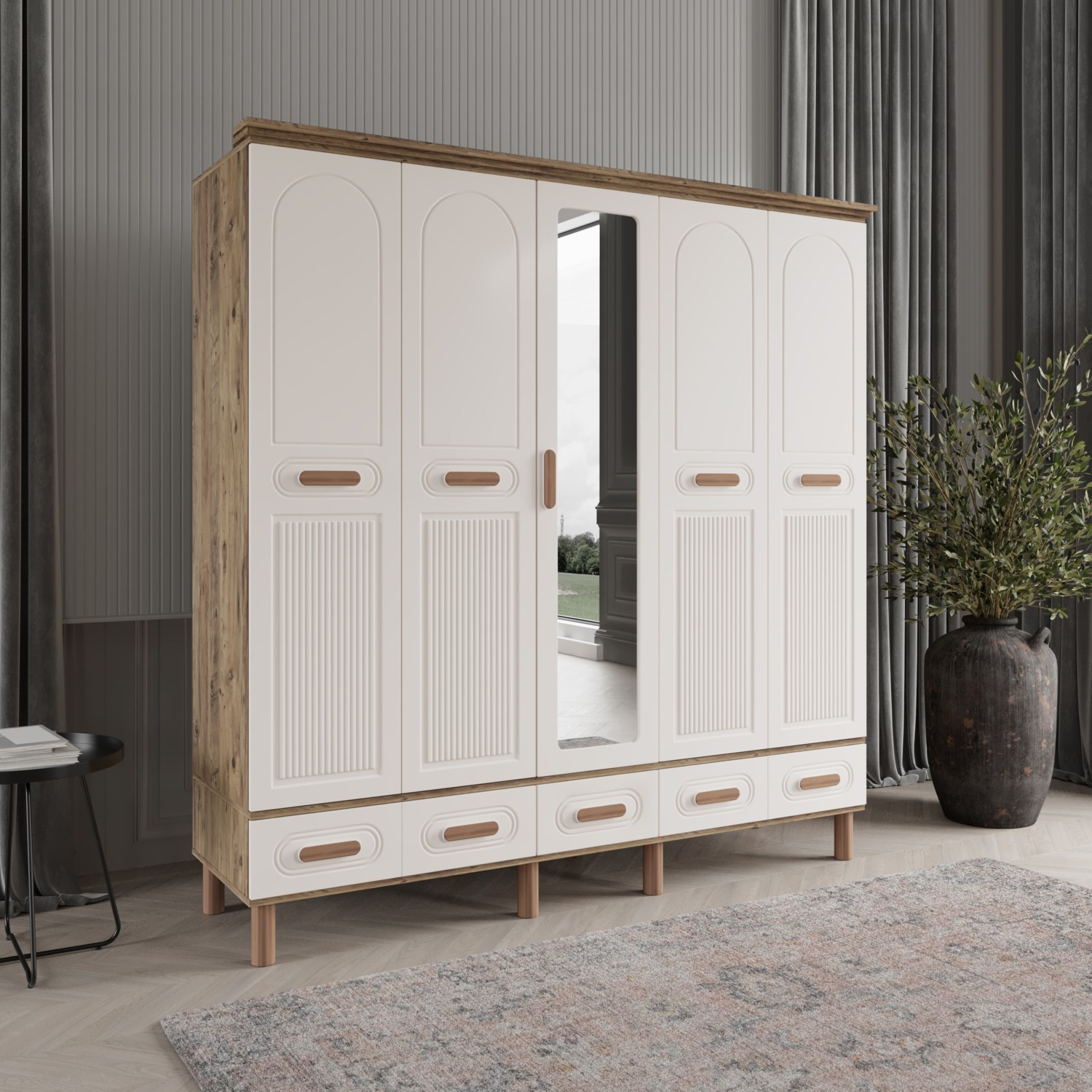 Comiet Pera 5 Kapaklı Aynalı Çekmeceli Mdf Gardırop