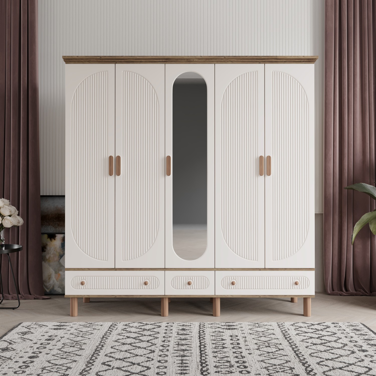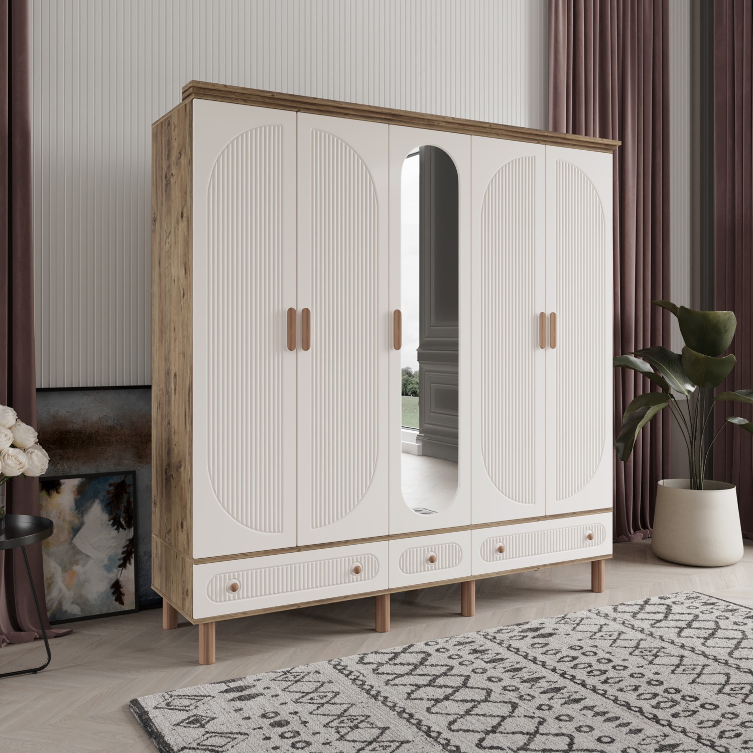 Comiet Soho 5 Kapaklı Aynalı Çekmeceli Mdf Gardırop