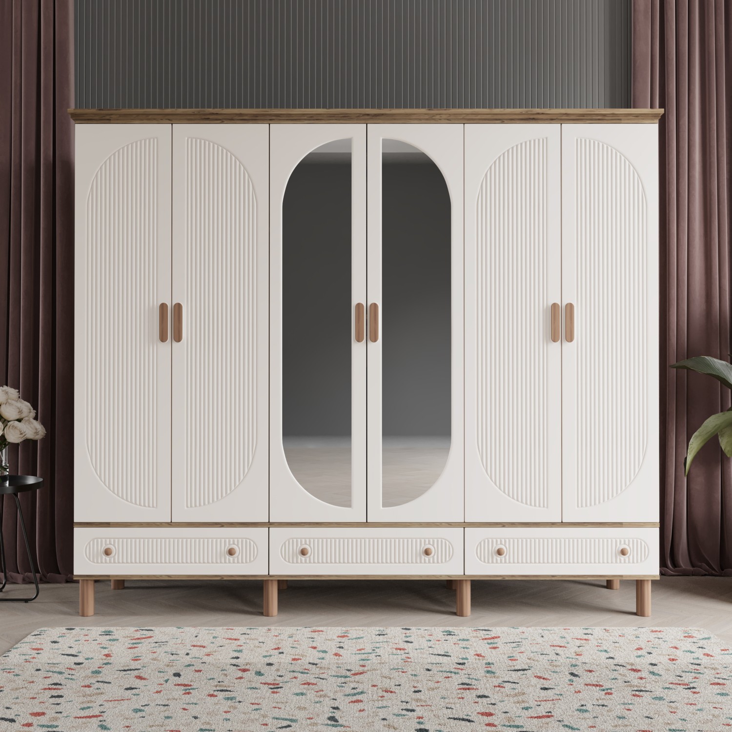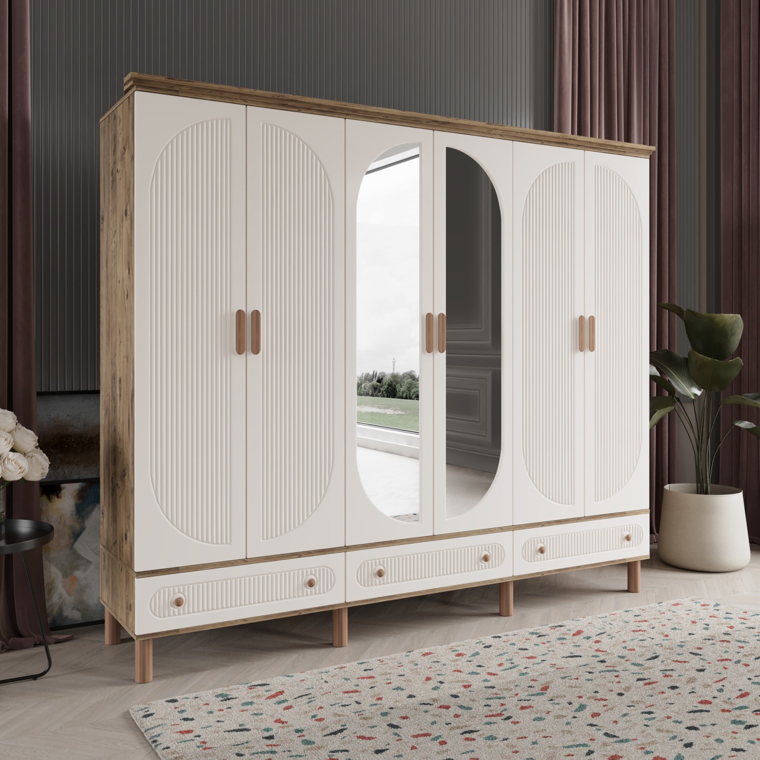 Comiet Soho 6 Kapaklı Aynalı Çekmeceli Mdf Gardırop