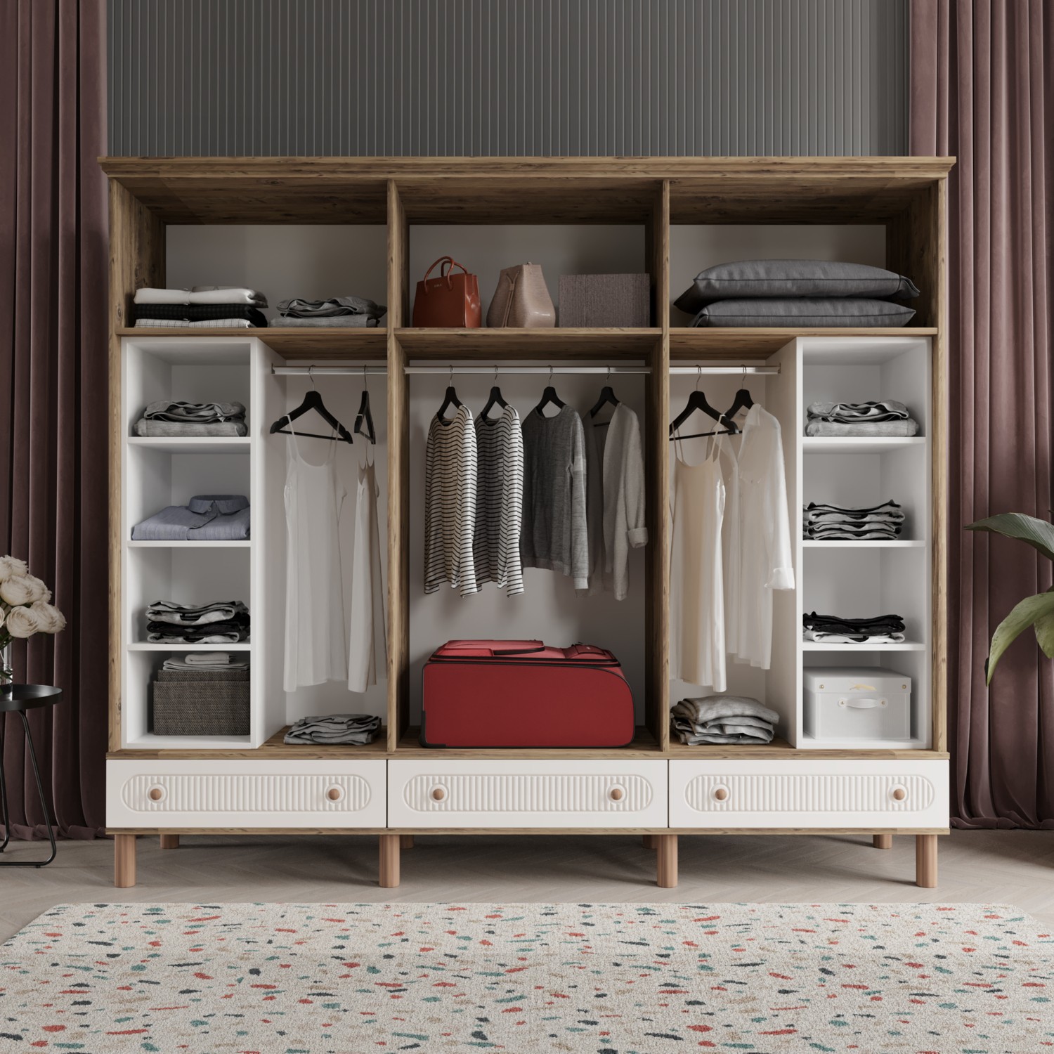 Gardırop dolaplarımız, dayanıklı ve şık bir tasarımla tamamen mdf malzemeden üretilmiştir.
