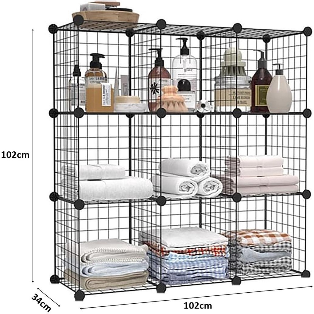 Decorelax 9 Bölmeli Tel Küp Çok Amaçlı Organizer Raf Siyah 33CM Mutfak, Oyuncak, Kiler, Depolama Rafı