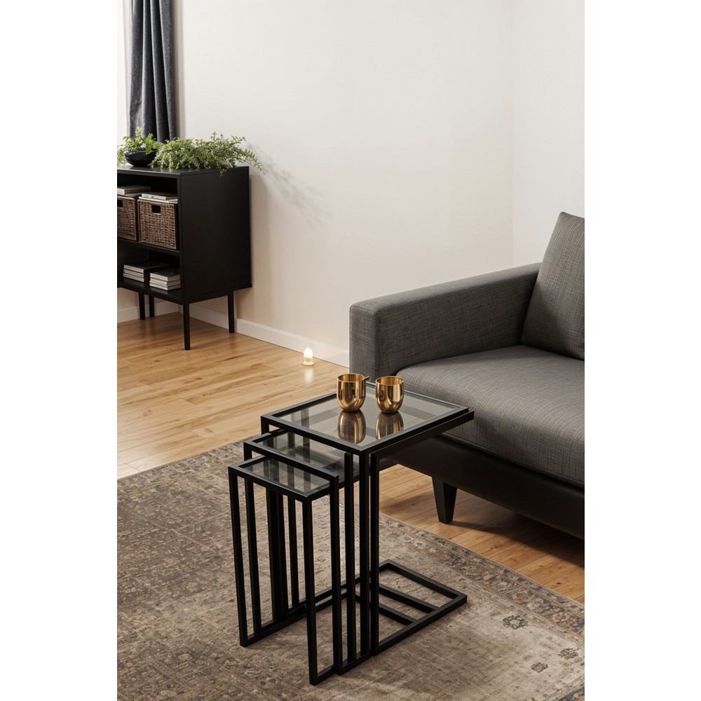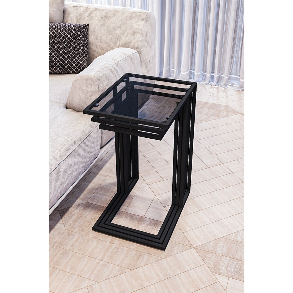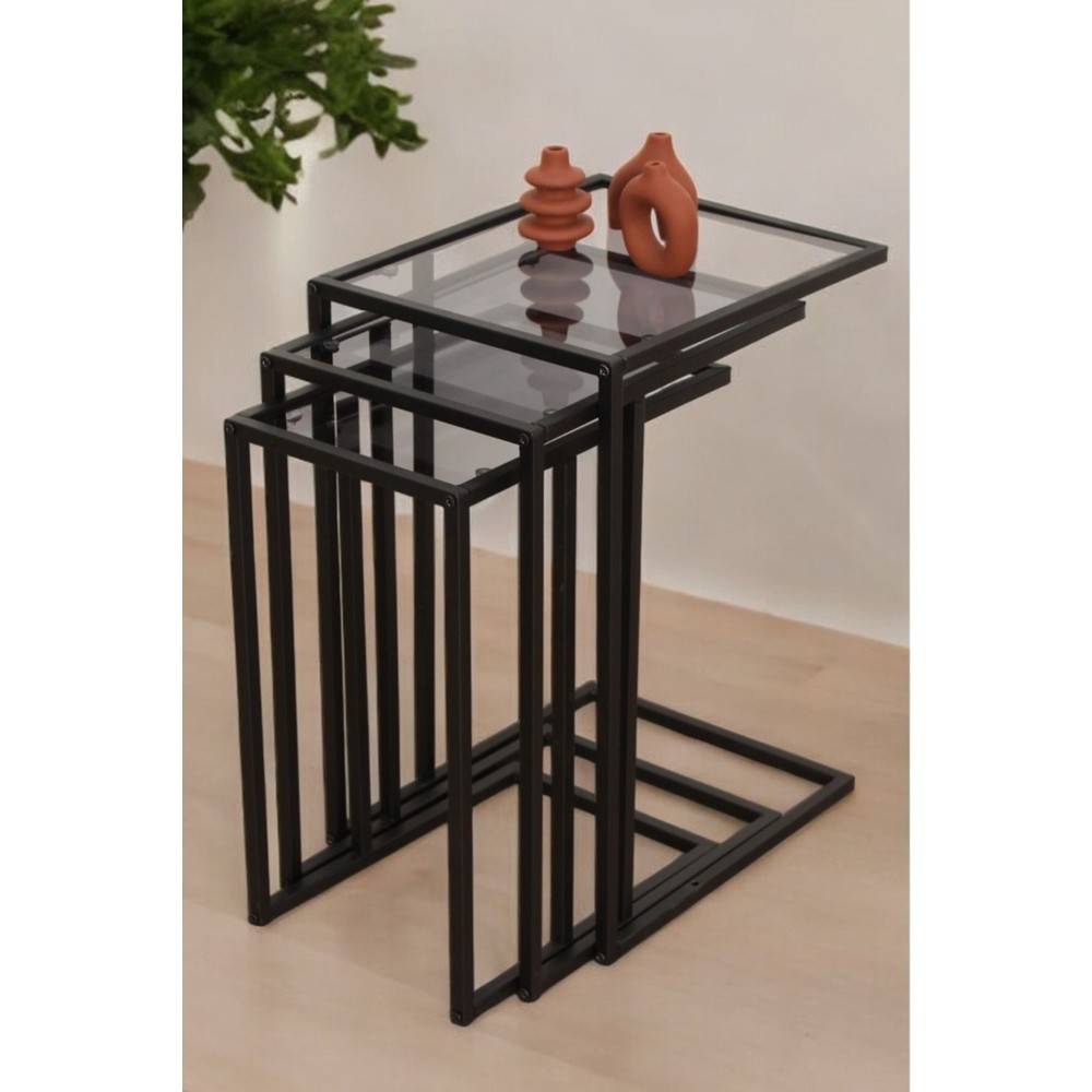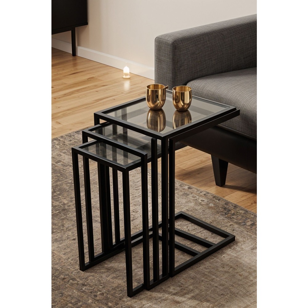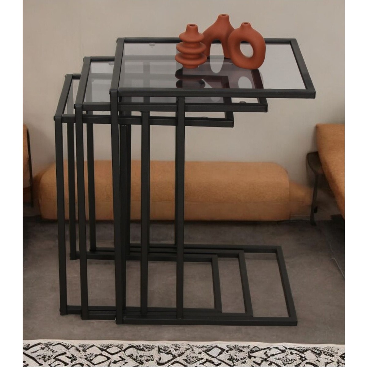 Dekopratik Ibiza Üçlü C Zigon Sehpa Takımı Koltuk Sehpası Metal Yan Sehpa Füme Camlı
