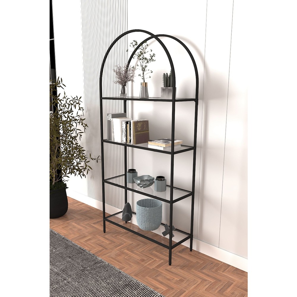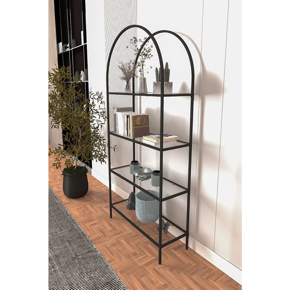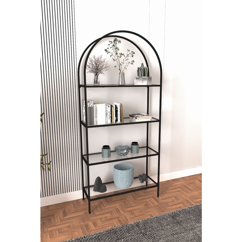 Dekopratik Mona Siyah Kitaplık Dekoratif Aksesuar Rafı Mutfak Rafı Şeffaf Cam