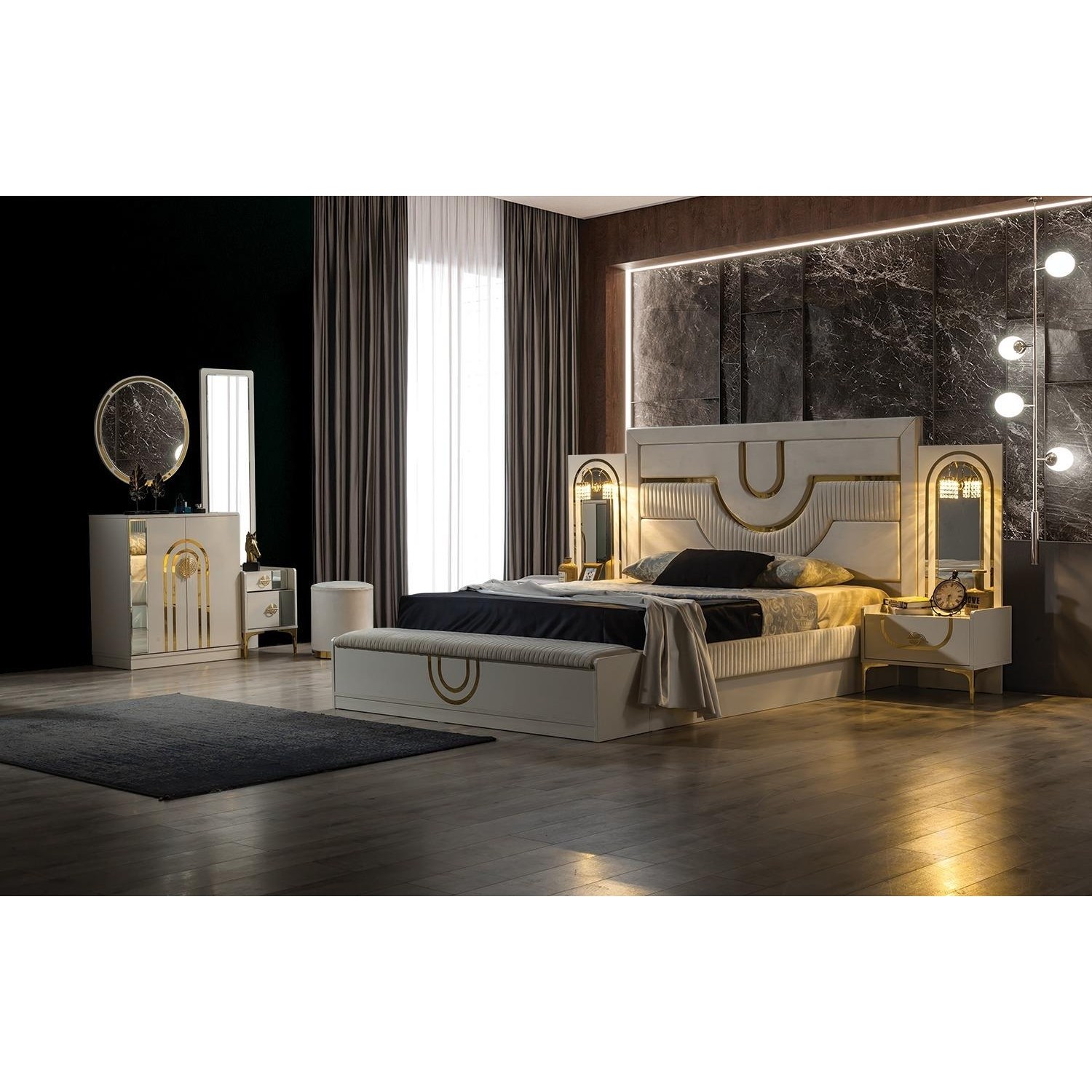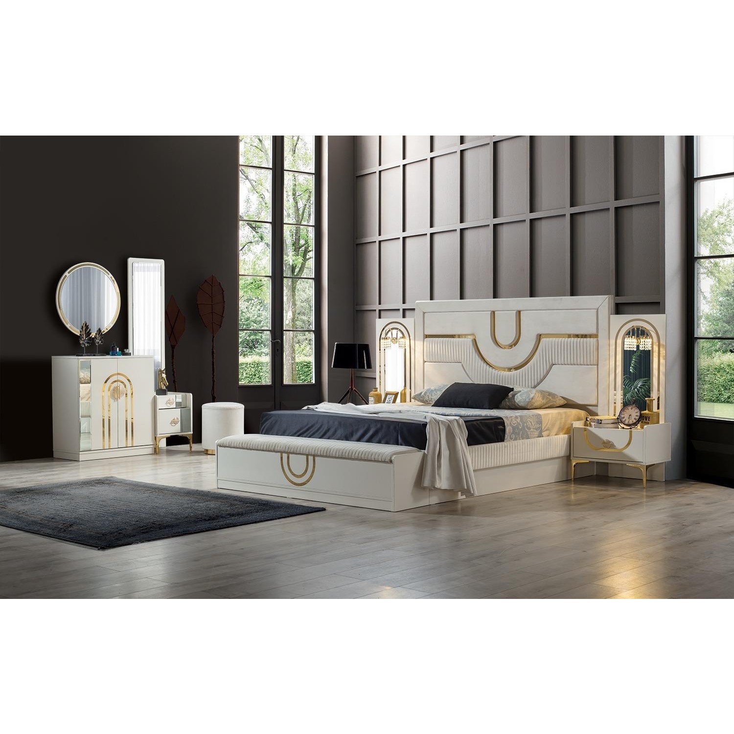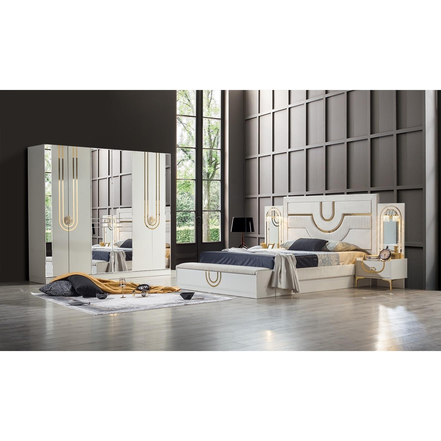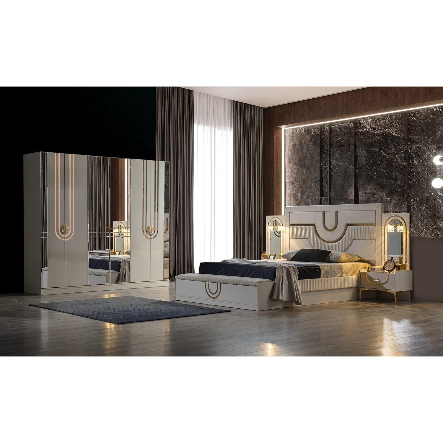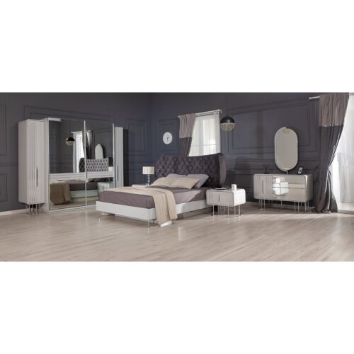 | Takım İçeriği | 6 Kapaklı Dolap, Başlıklı Bazalı Karyola, Aynalı Şifonyer ve 2 adet komodinden oluşmaktadır. |
