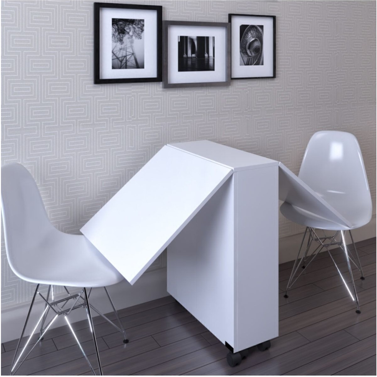 •  Yemek masamız, yarı genişleyen yazı masası veya bir köşeye yerleştirilmiş katlanabilir küçük sehpa gibi birçok amaç için kullanılabilecek katlanabilir modern bir tasarıma sahiptir. Kolayca katlanabilen ancak aynı zamanda 4 kişilik tam boy yemek masasına, hatta 2-3 kişilik yan sehpaya dönüşebilen bu masaya sahip olmak çok güzel.