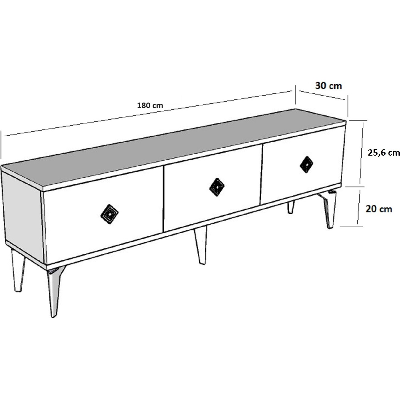 • CENEYRA TV ÜNİTESİ:  Genişlik x derinlik x yükseklik = 180 X 30 X 45,6 CM