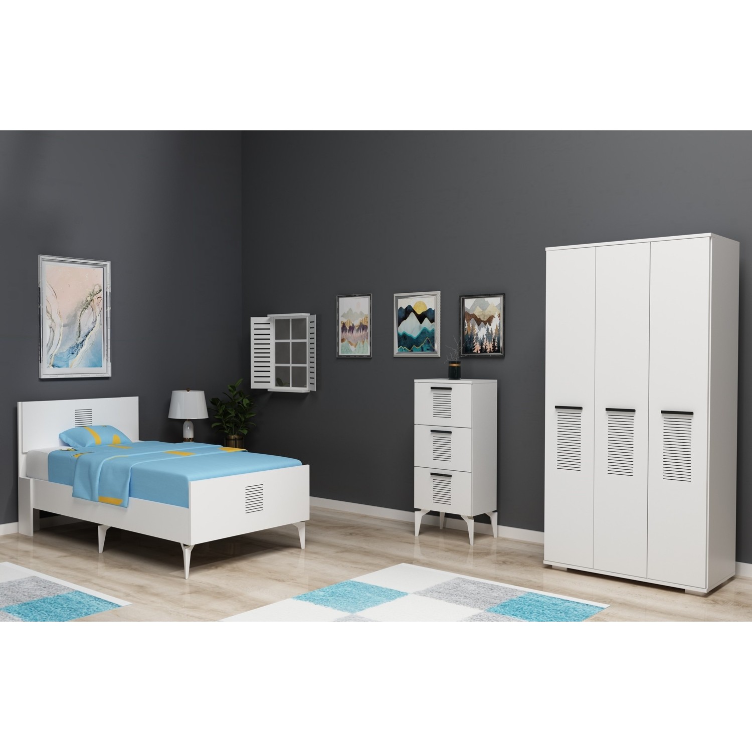 Demonte Dekor Asimo Çocuk Genç Odası Takımı (H-L-C) Beyaz-Beyaz