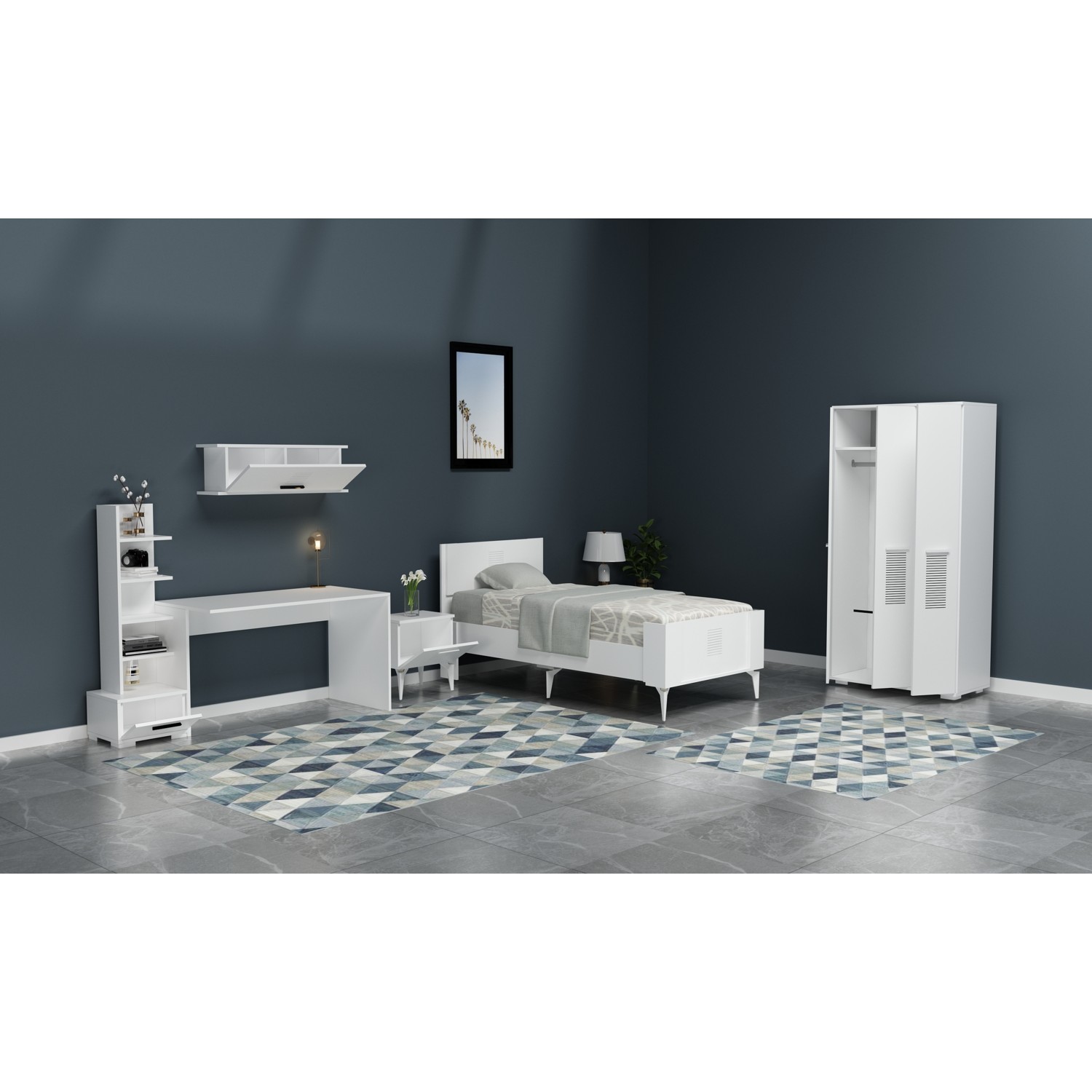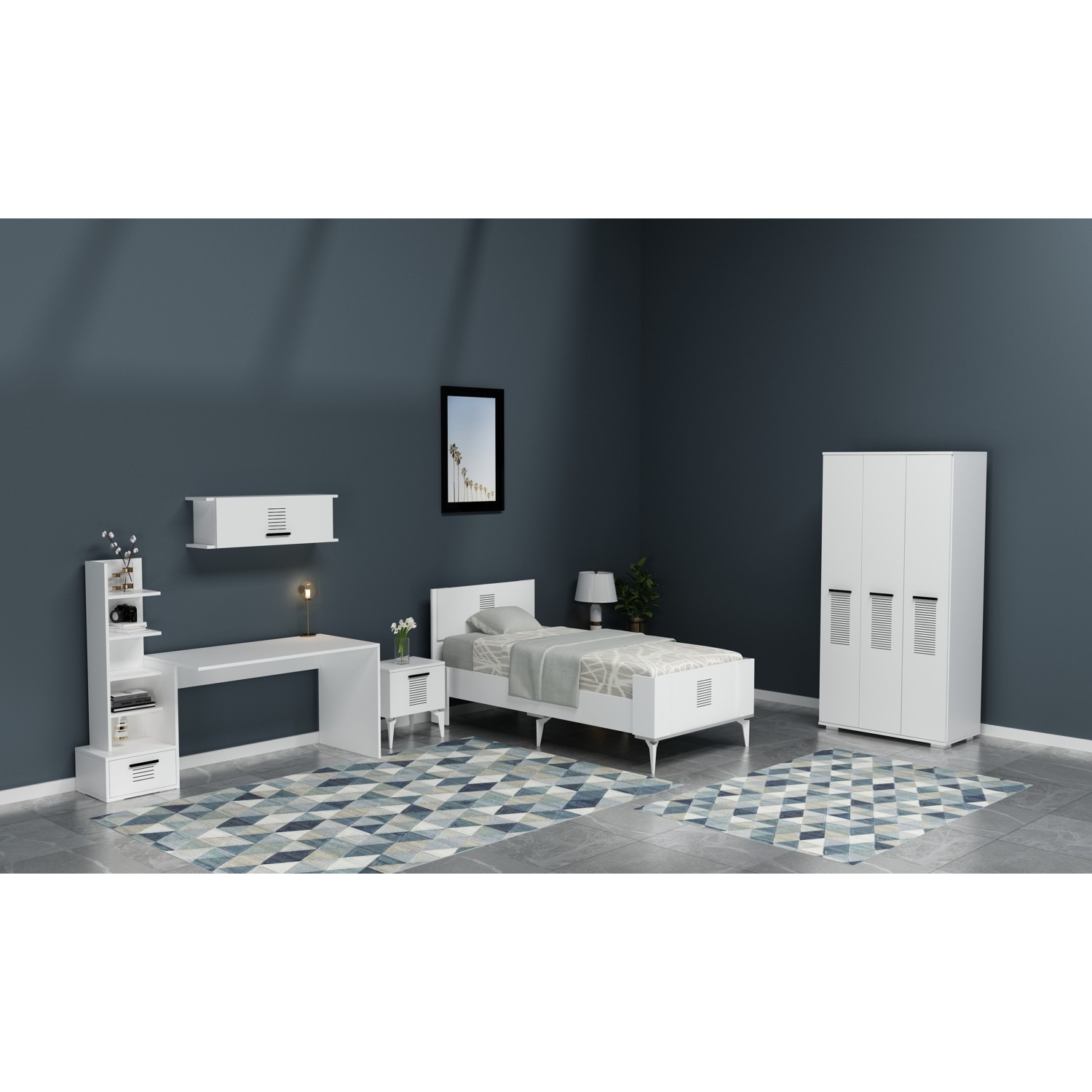 Demonte Dekor Asimo Çocuk Genç Odası Takımı (P-T-L-C-G) Beyaz-Beyaz