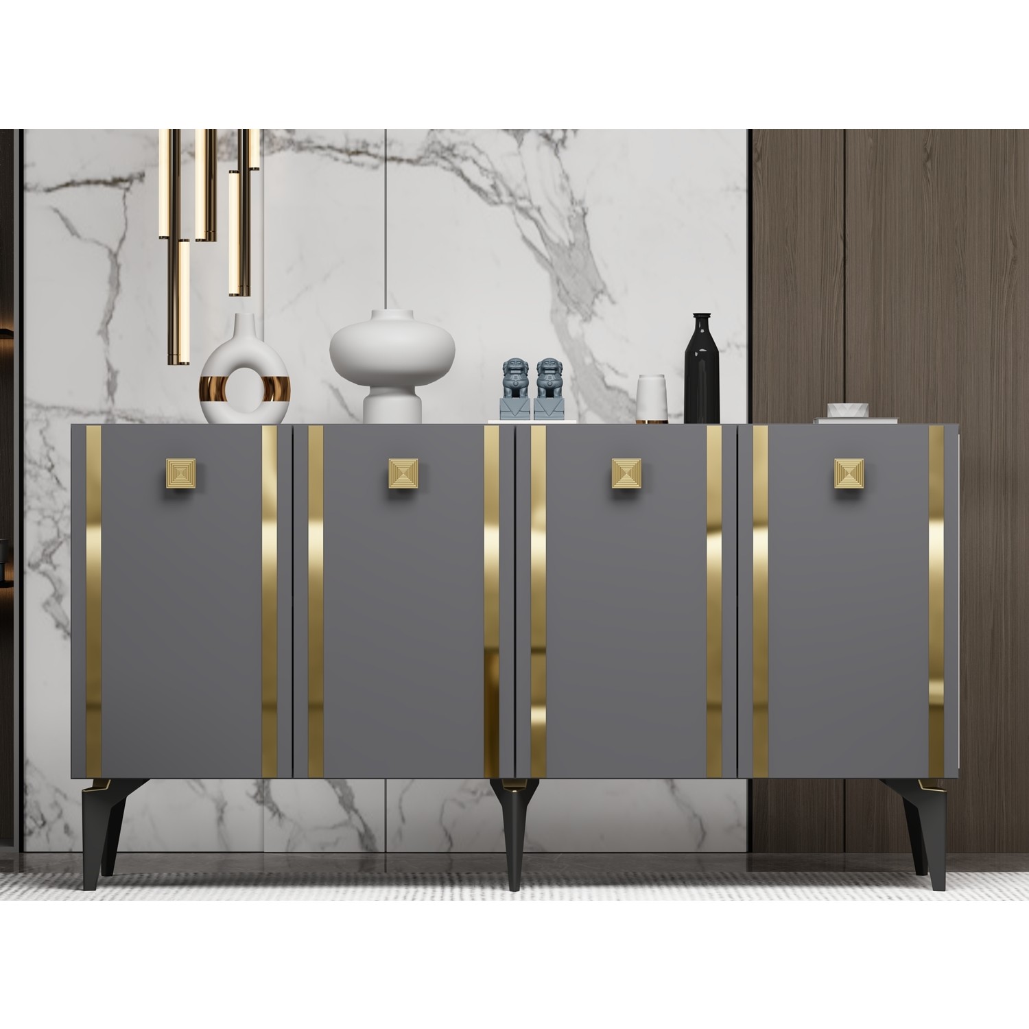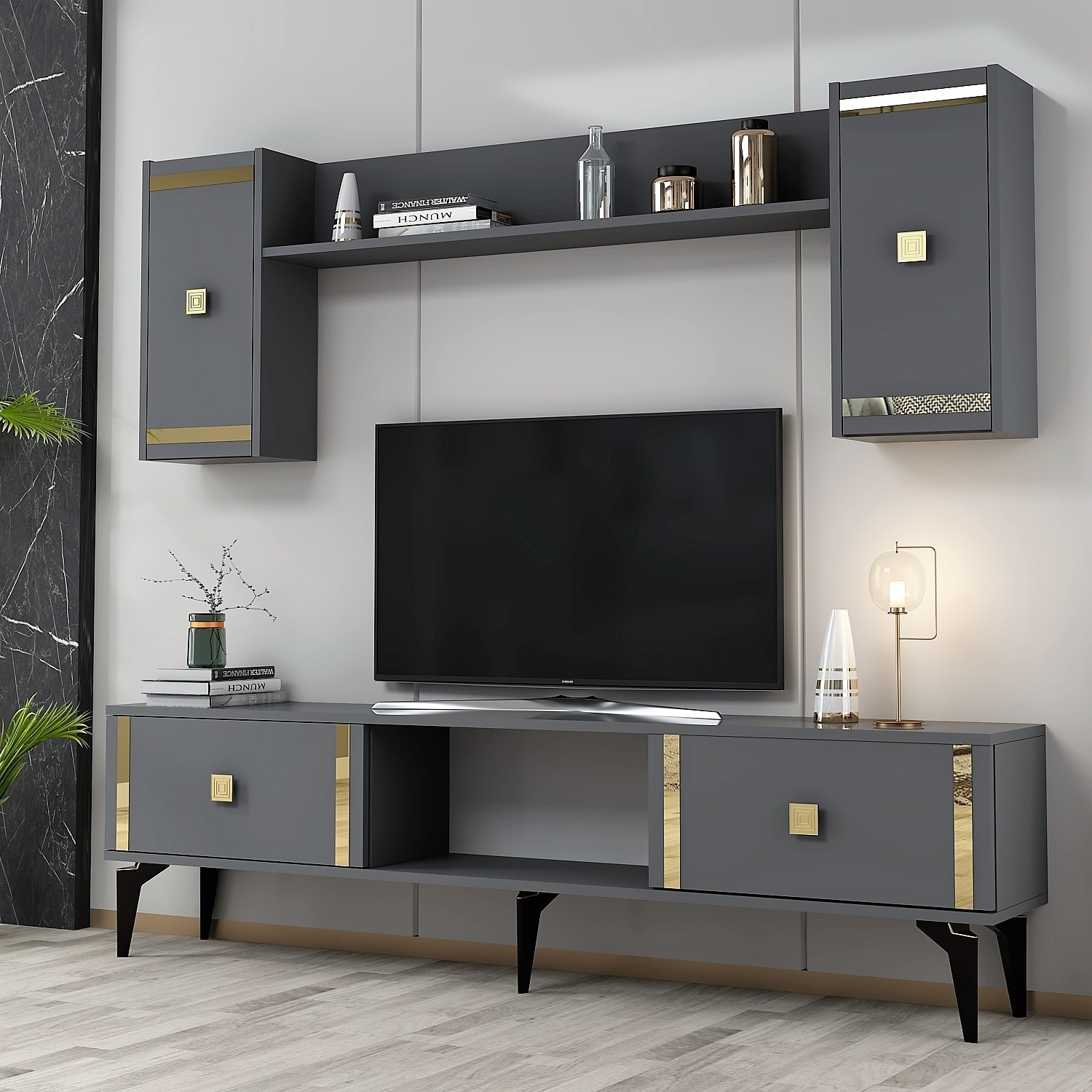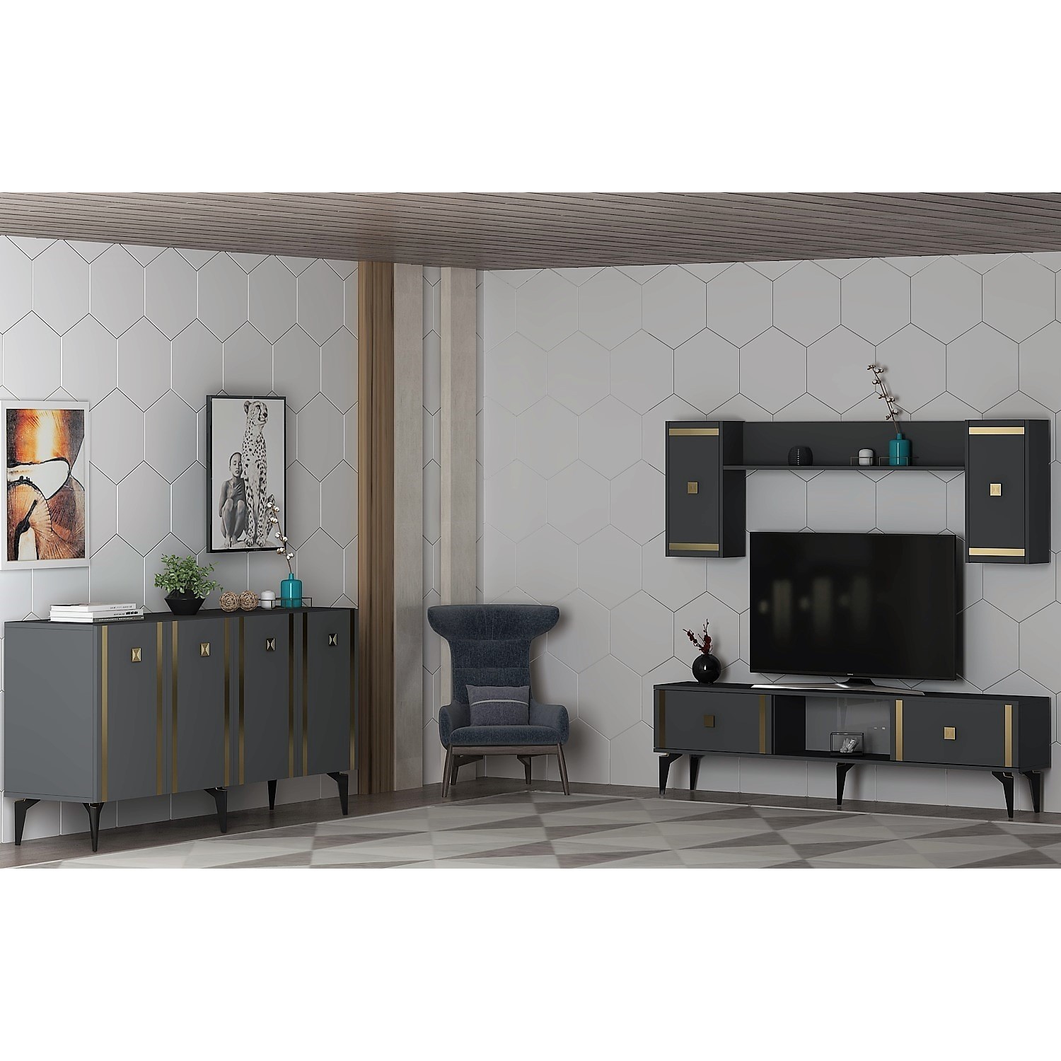 Demonte Dekor Doruk Tv Ünitesi ve Konsol 2’li Salon Takımı Antrasit Altın