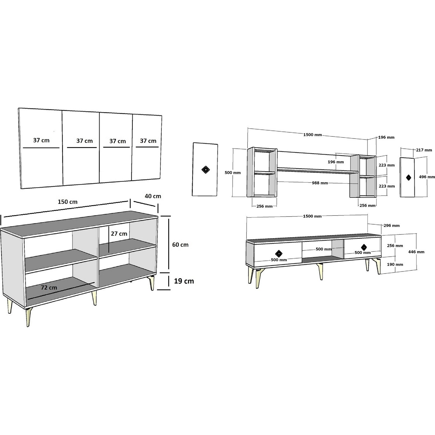 DORUK   TV SEHPASI:  Genişlik x derinlik x yükseklik = 150 X 29,6 X 44,6 CM DORUK   DUVAR RAFI: Genişlik x derinlik x yükseklik = 150 X 19,6 X 50 CM                                                                                                                       DORUK KONSOL:     Genişlik x derinlik x yükseklik = 150 x 40 x 79 cm .   Detaylı ürün ölçüleri görselde belirtilmişti Ürün 18 mm kalınlığında suntalam malzeme kullanılarak üretilmiştir. Ürün nemli bez ile kolayca silinebilir. Kurulum için gerekli montaj şeması ve montaj elemanları ürün ile birlikte gönderilir. Ürünümüzde 19 cm olan 5 adet sağlam plastik malzemeden oluşan ayaklar mevcuttur. Demonte olarak kargo ile gönderilecek olup kurulum siz değerli müşterilerimize aittir. Bizi tercih ettiğiniz için teşekkür ederiz.