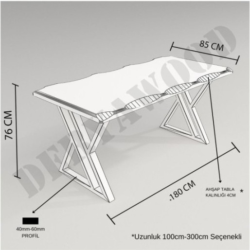 | Masa Ölçüsü | Uzunluk 100-300cm En 60-70-85cm |