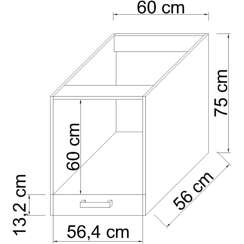 yükseklik : 75 cm genişlik : 60 cm derinlik : 56 cm kapaklı bölme yüksekliği : 13,2 cm