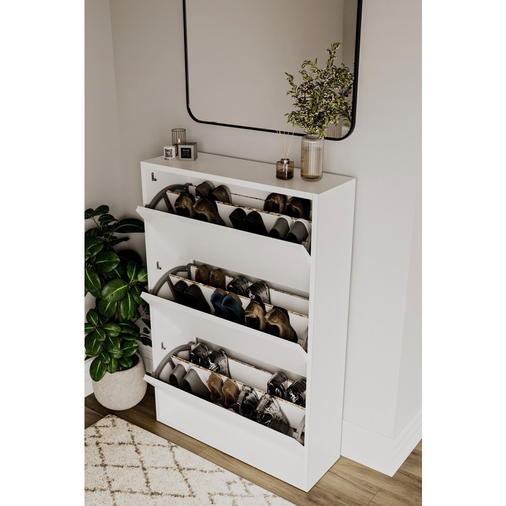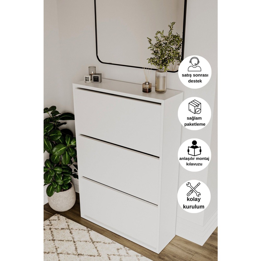 Dewoody Düşer Kapak Ayakkabılık 3 Bölmeli Ayakkabılık Duvara Montajlanabilir