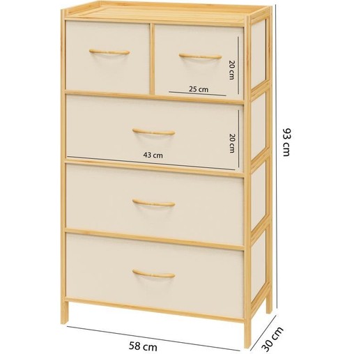 Digithome Bambu 5 Çekmeceli Dolap Organizer Çok Amaçlı Düzenleyici Şifonyer DB-0013
