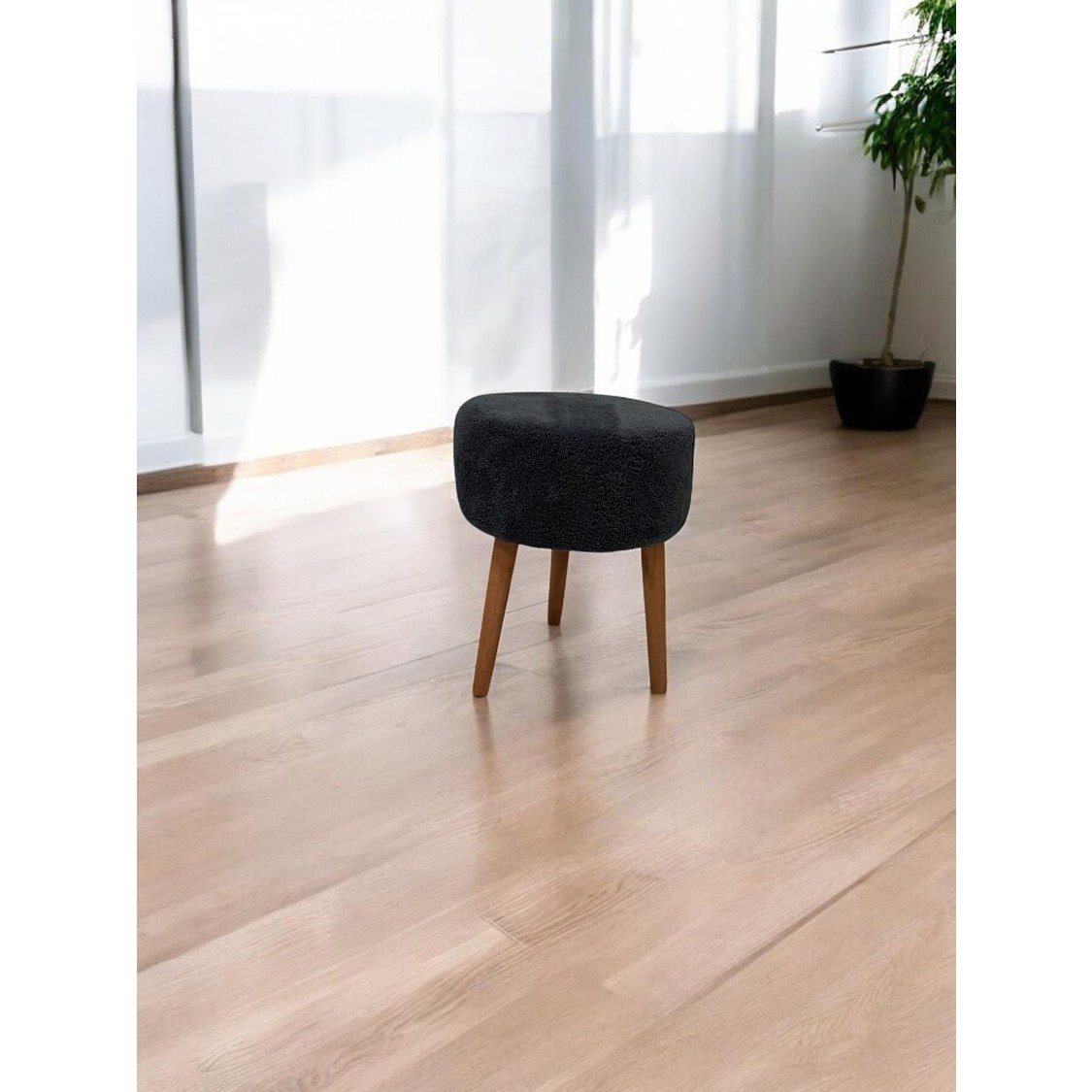 EDAM Siyah Teddy Kumaş Çay Seti Ikili Koltuk Berjer ve Puf Takımı (Salon, Balkon, Ofis) 3’lü Takım