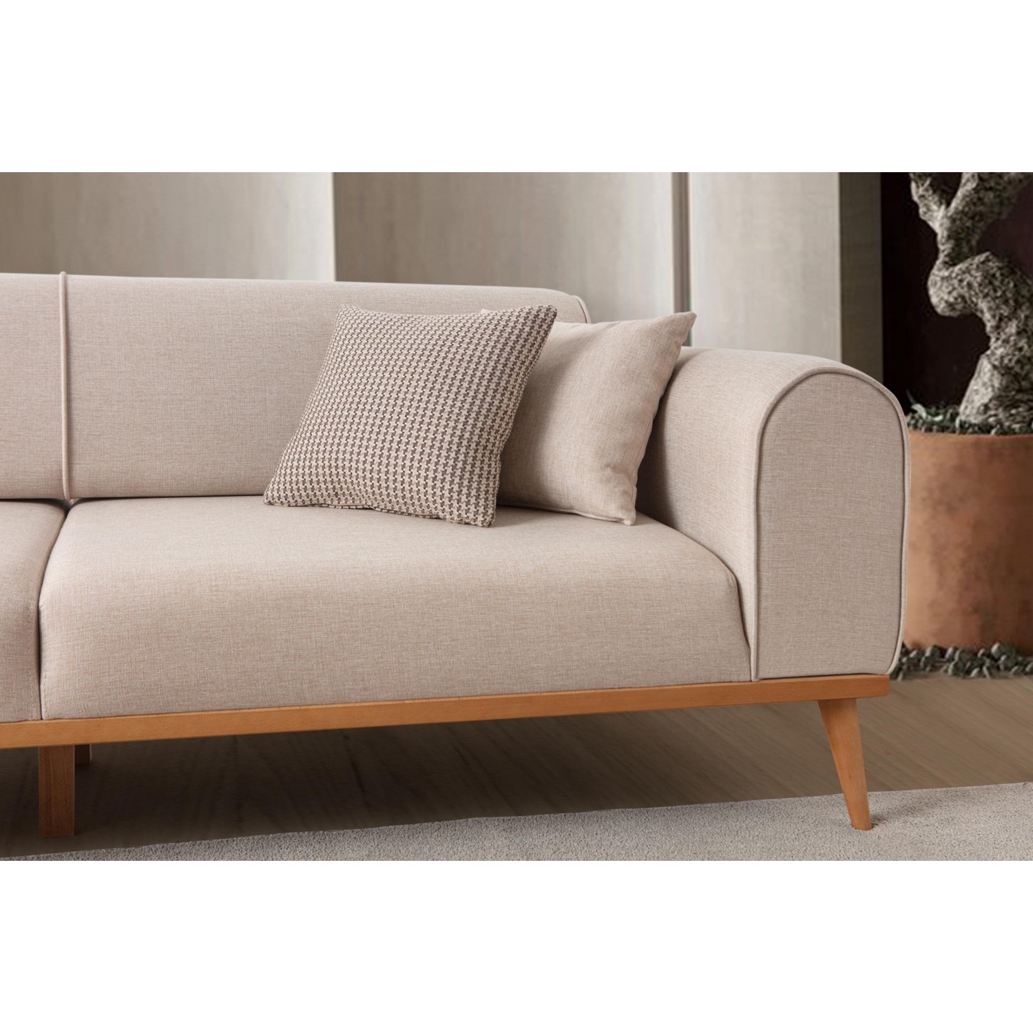 Takım İçeriği: 3+1 Koltuk Takmı ; Tahmini sevk süresi 15 iş günüdür. ; Kumaş Türü: Silinebilir kumaş kullanılmıştır. Kimyasal olmayan temizlik maddeleri ile silebilirsiniz. ; Oturum Minderi Malzemesi:30 DNS soft sünger kullanılmıştır. ; Oturum Sertliği: Orta Sert ; Sırt Mekanizması: Açılır Yatak Özelliği ; İskelet Malzemesi: Ahşap ile güçlendirilmiş metal iskelet. ; Ayak Malzemesi: Ahşap; Ürün ile birlikte 4 Adet kırlent gönderilmektedir.; Kurulum: 3 parça halinde kurulu olarak gönderim sağlanır sadece ayakları takılır onun dışında kurulumu yoktur.; Kumaş İçeriği: Poliüretan ve akrilik türevlerinden oluşan polyester içerikli KETEN kumaş kullanılmıştır. ; Kullanılan kumaşların tamamı ithal silinebilir kumaşlardır. Sabunlu bez ile silinebilir ve arkasından kurulayarak temizlik işlemi sonlandırılır. Lekelere karşı dayanıklı ve son derece kaliteli kumaşlardır. ; Ürün Ölçüleri : ; Kanepe Yükseklik: 76 cm / Genişlik:224 cm / Derinlik: 90 cm / Oturum Yükseklik 41 cm ; Berjer Ölçüleri: Genişlik 75 cm / Yükseklik 65 cm / Derinlik 60 cm