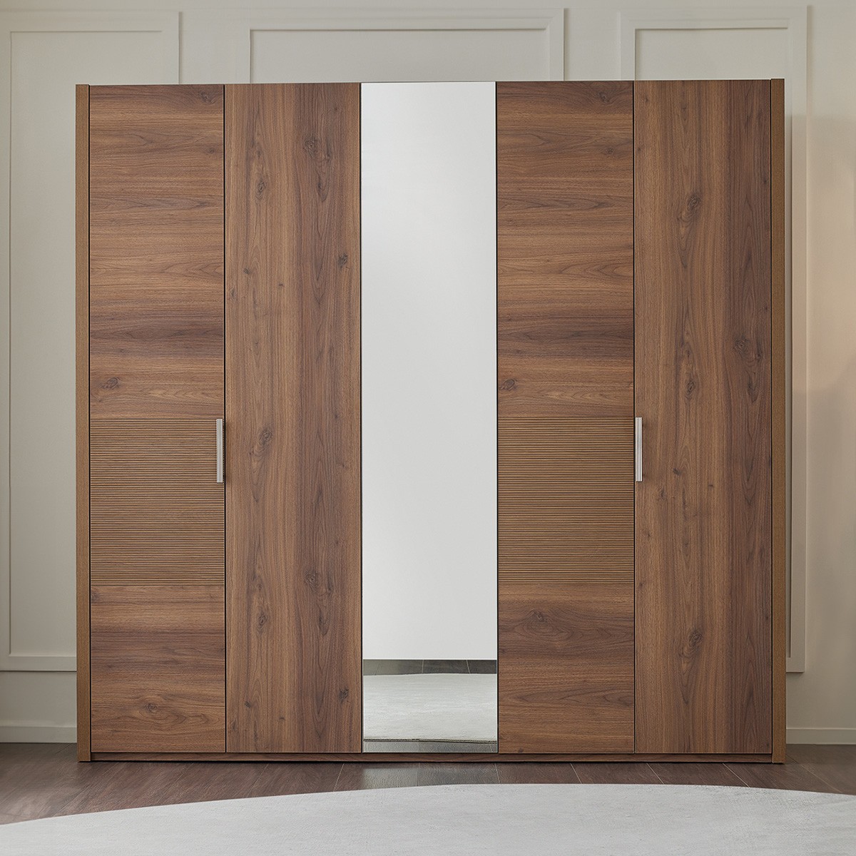 Enza Home Pavia 5 Kapaklı Aynalı Gardırop – Ceviz