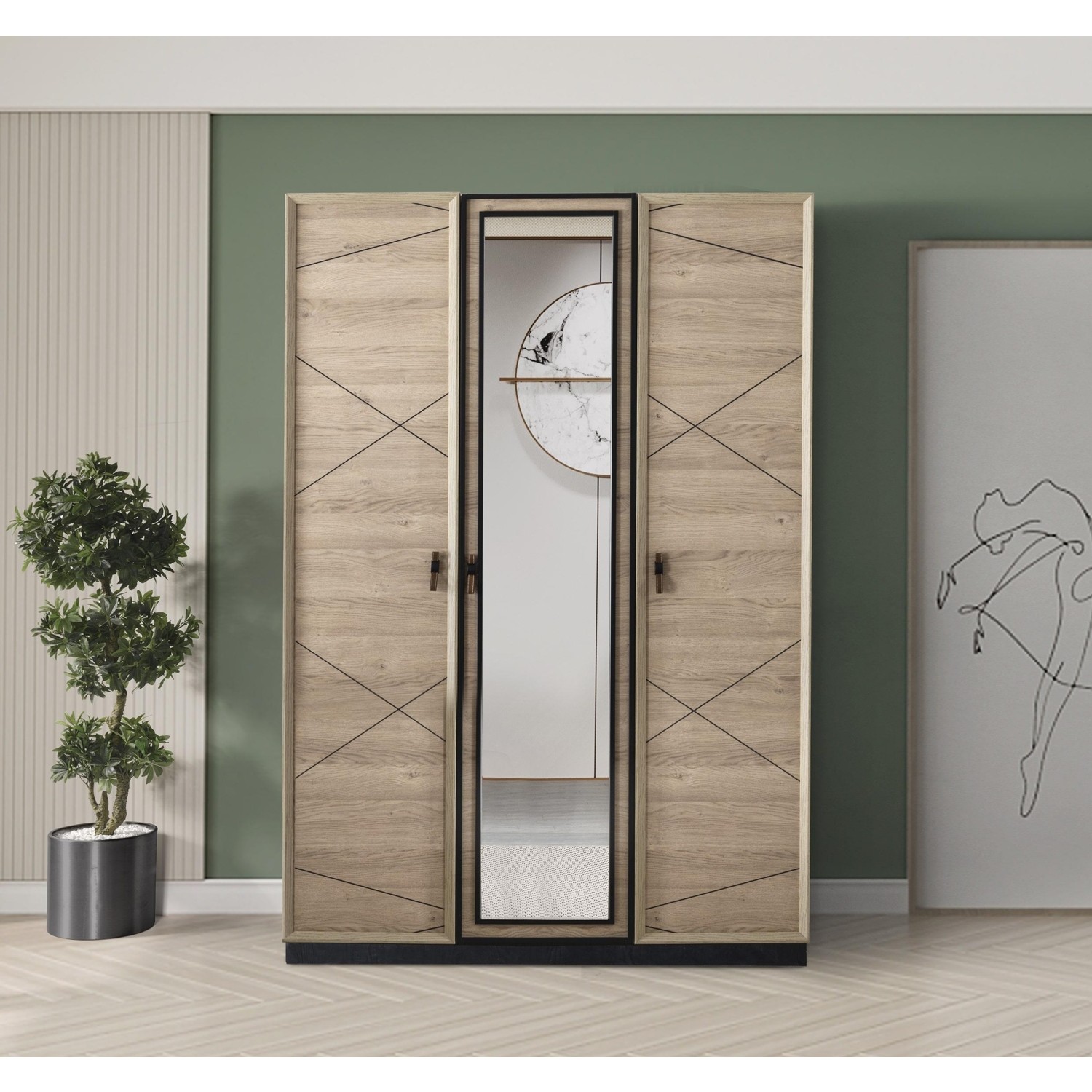 Vega 3 Kapaklı Modern Aynalı Elbise Dolabı Gardrop 135x50x200cm