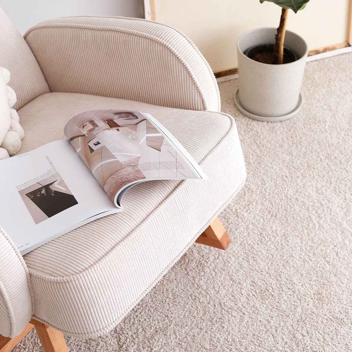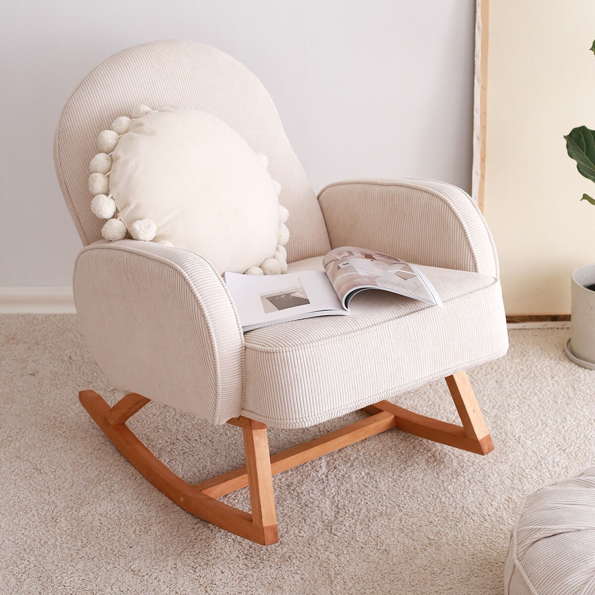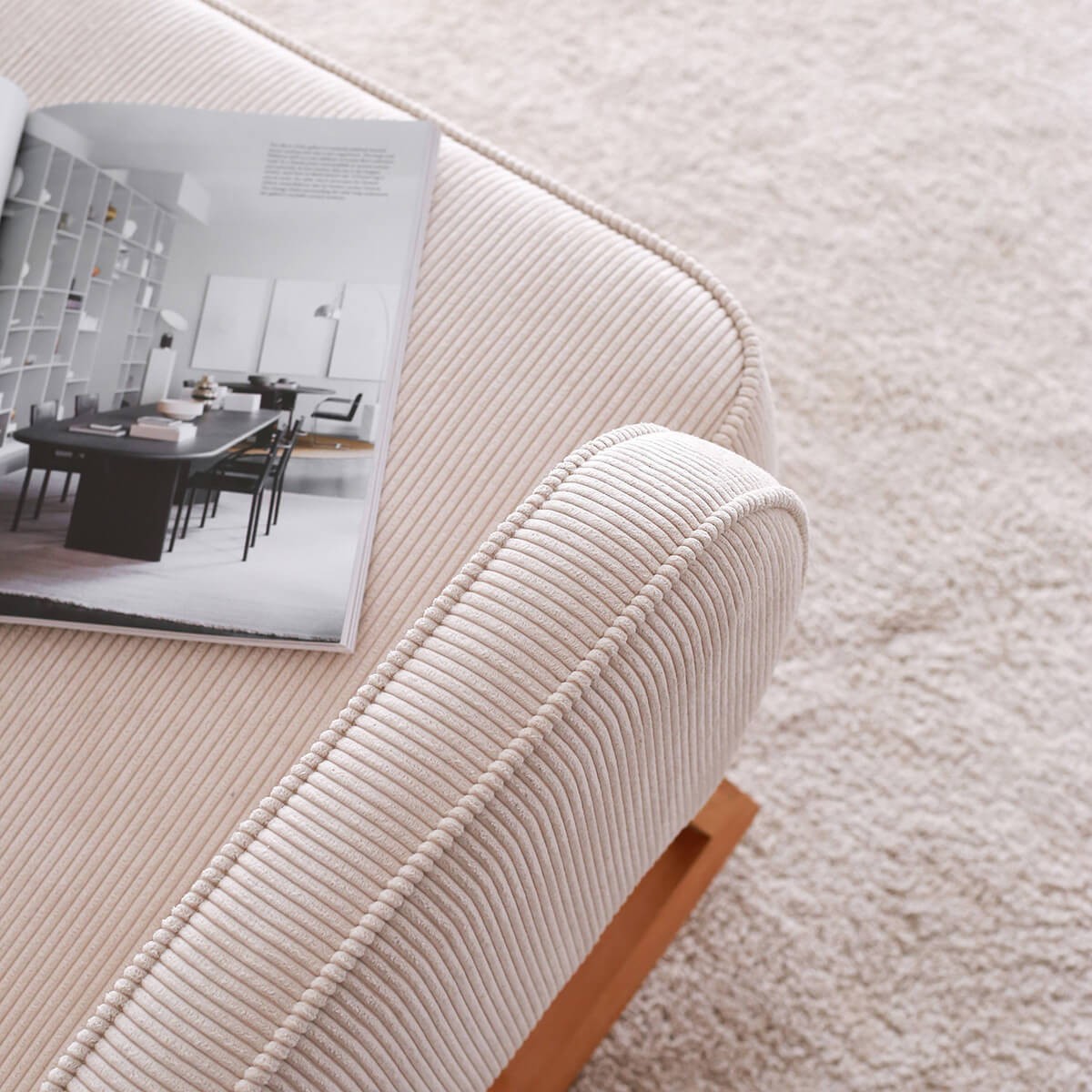 YOKO Sallanır Koltuk’un gürgen ahşap ayakları tik yağıyla cilalanarak doğal dokusunu korudu. Doğal ahşap ürünlerde ağacın ham dokusu ve renginden kaynaklı farklılıklar olabilir. YOKO orta sertlikteki minderiyle uzun süre rahat etmenizi sağlayacak. Yeni nesil yumuşak kadife dokulu fitilli kumaş terletmez, kolay leke tutmaz ve silinerek kolayca temizlenebilir.