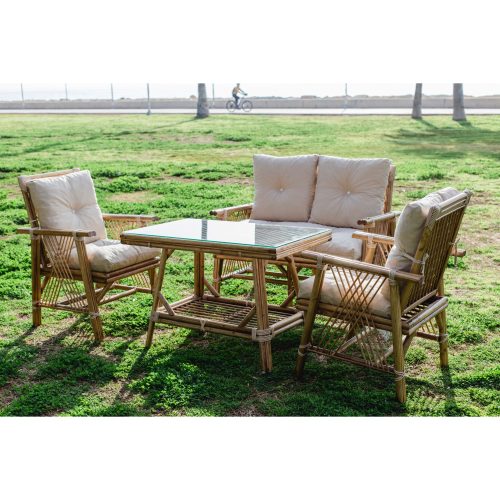 evvon ahşap katlanır bistro set 4lü minderli balkon bahçe mobilyası