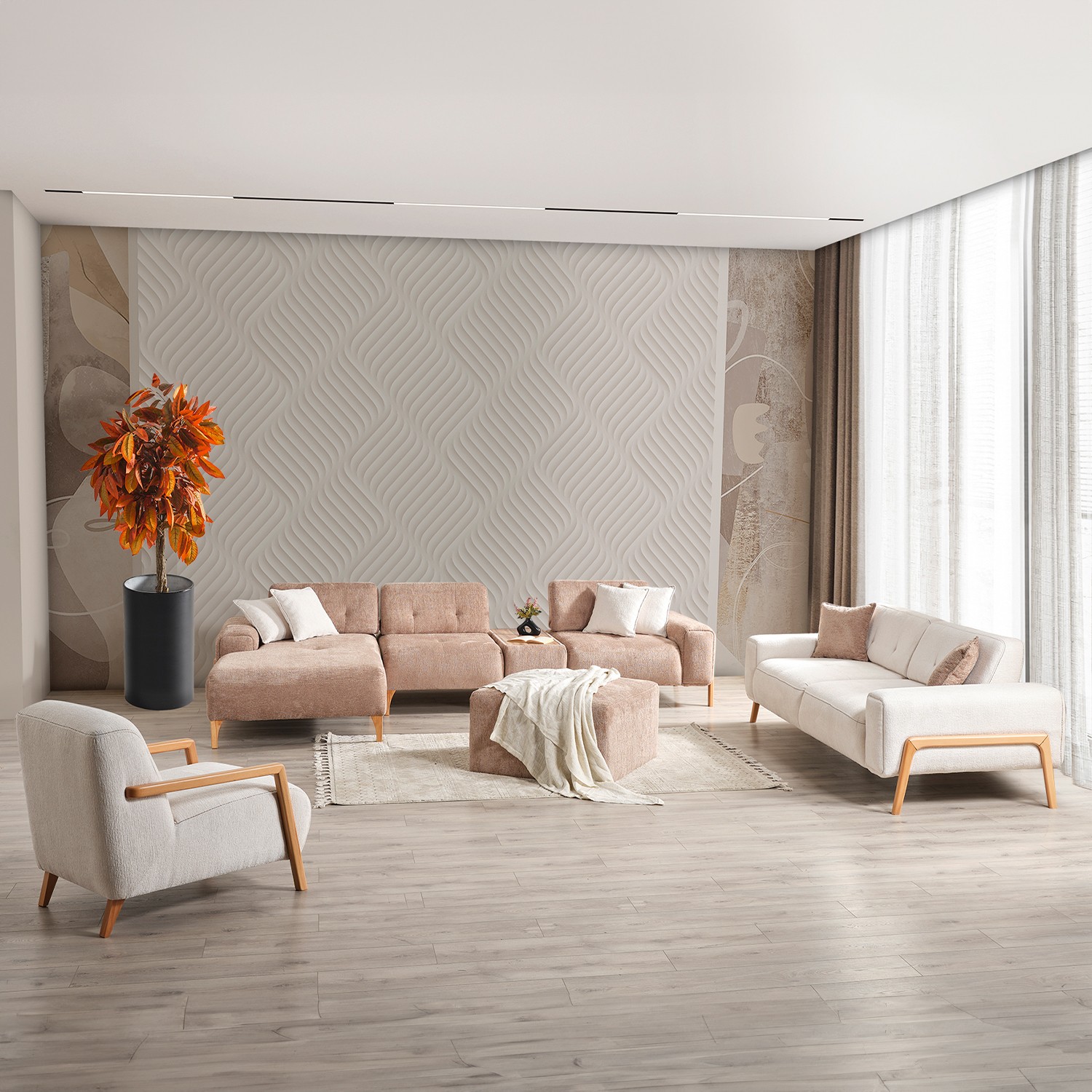 Eymense Dolex Sırt Mekanizmalı Ceviz Kasa Köşeli Piyonlu Koltuk Takımı 3+1+K+P