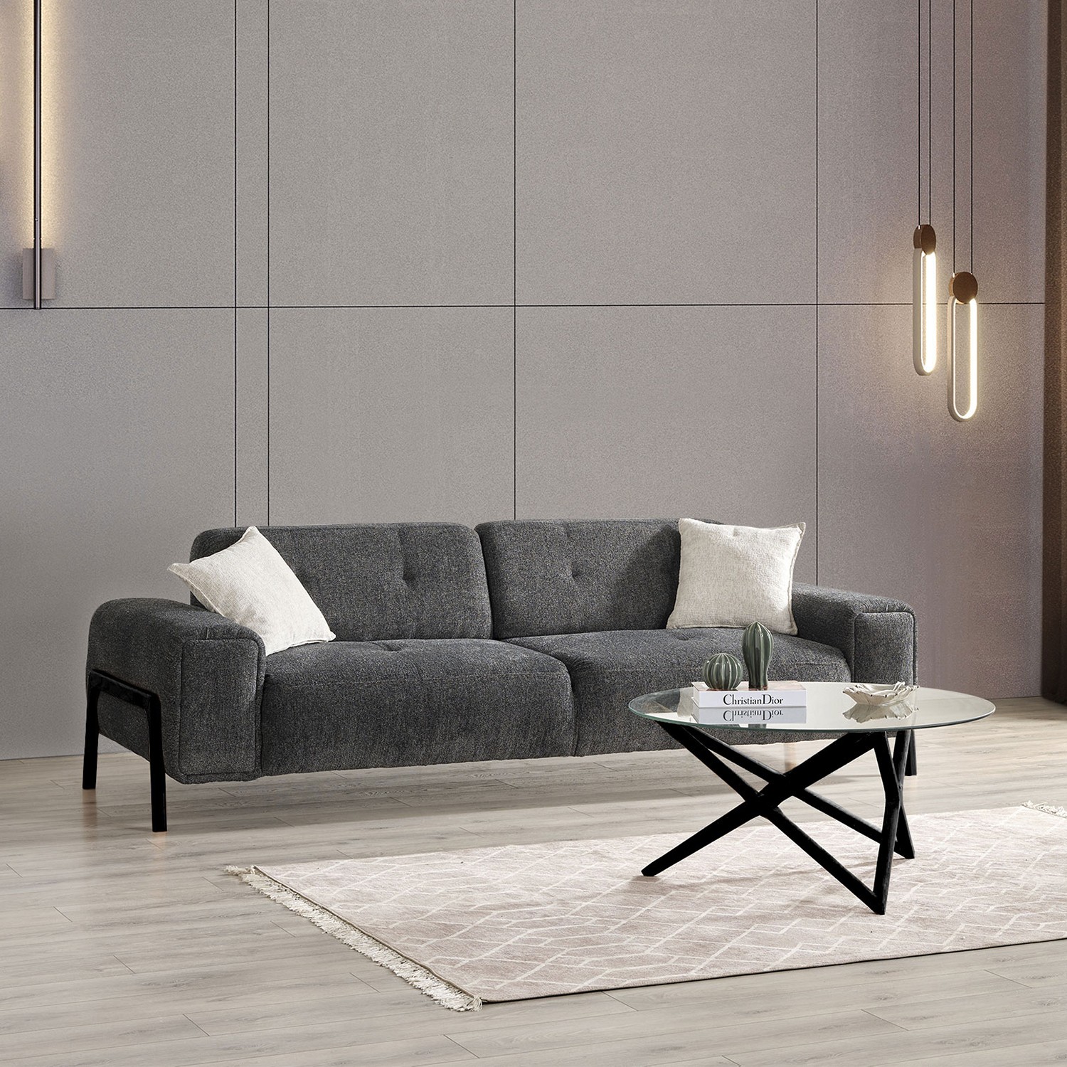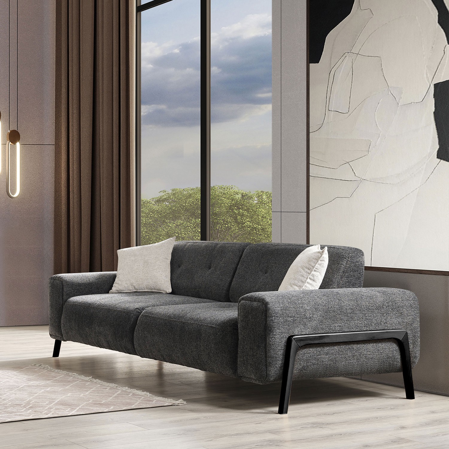 Eymense Dolex Siyah Kasa Modern Sırt Mekanizmalı Koltuk Takımı 3+1