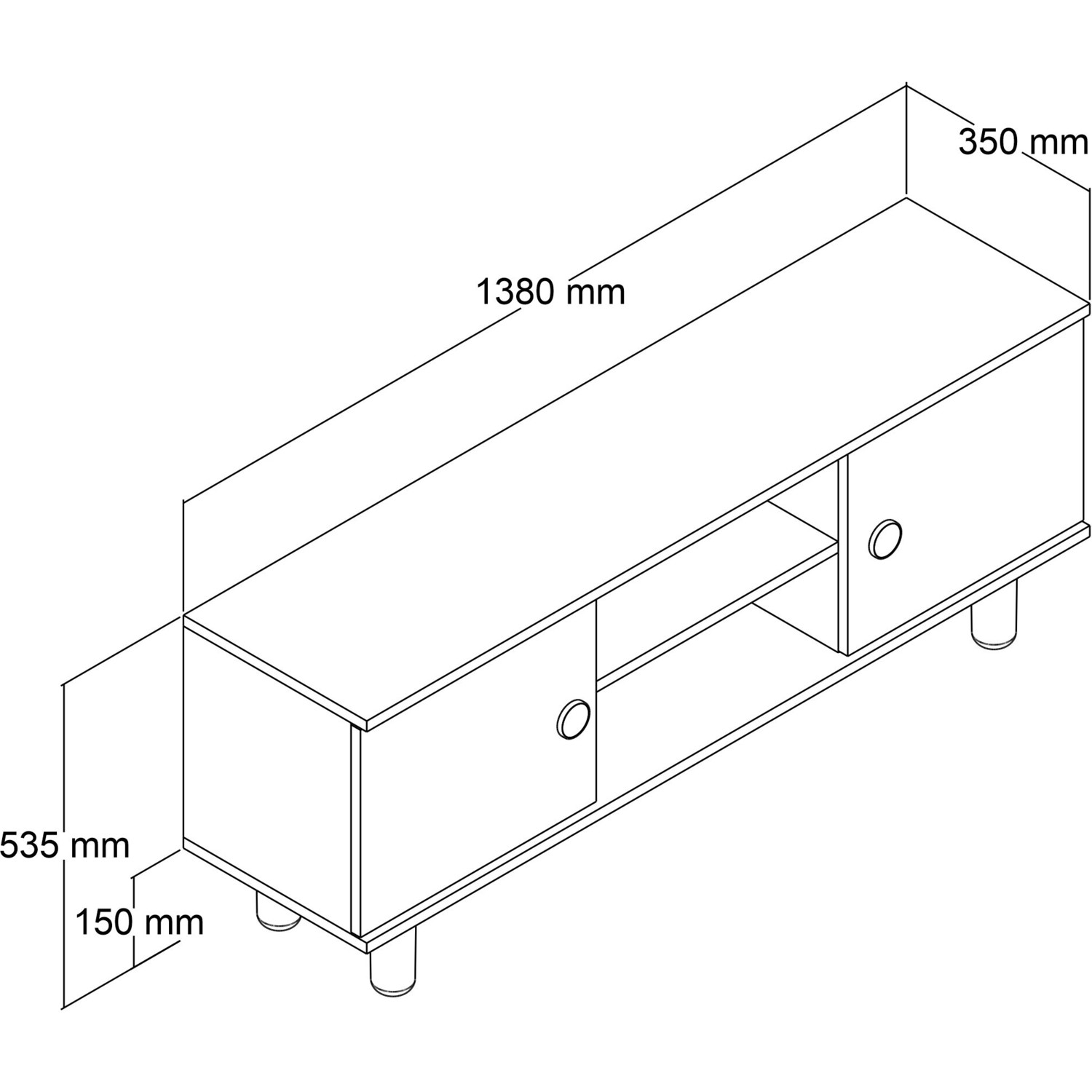 2. Kompakt Ölçüler: 138 cm genişlik, standart TV’ler için ideal; 35 cm derinlik dar salon ve oturma odalarında bile rahat kullanım sunar.