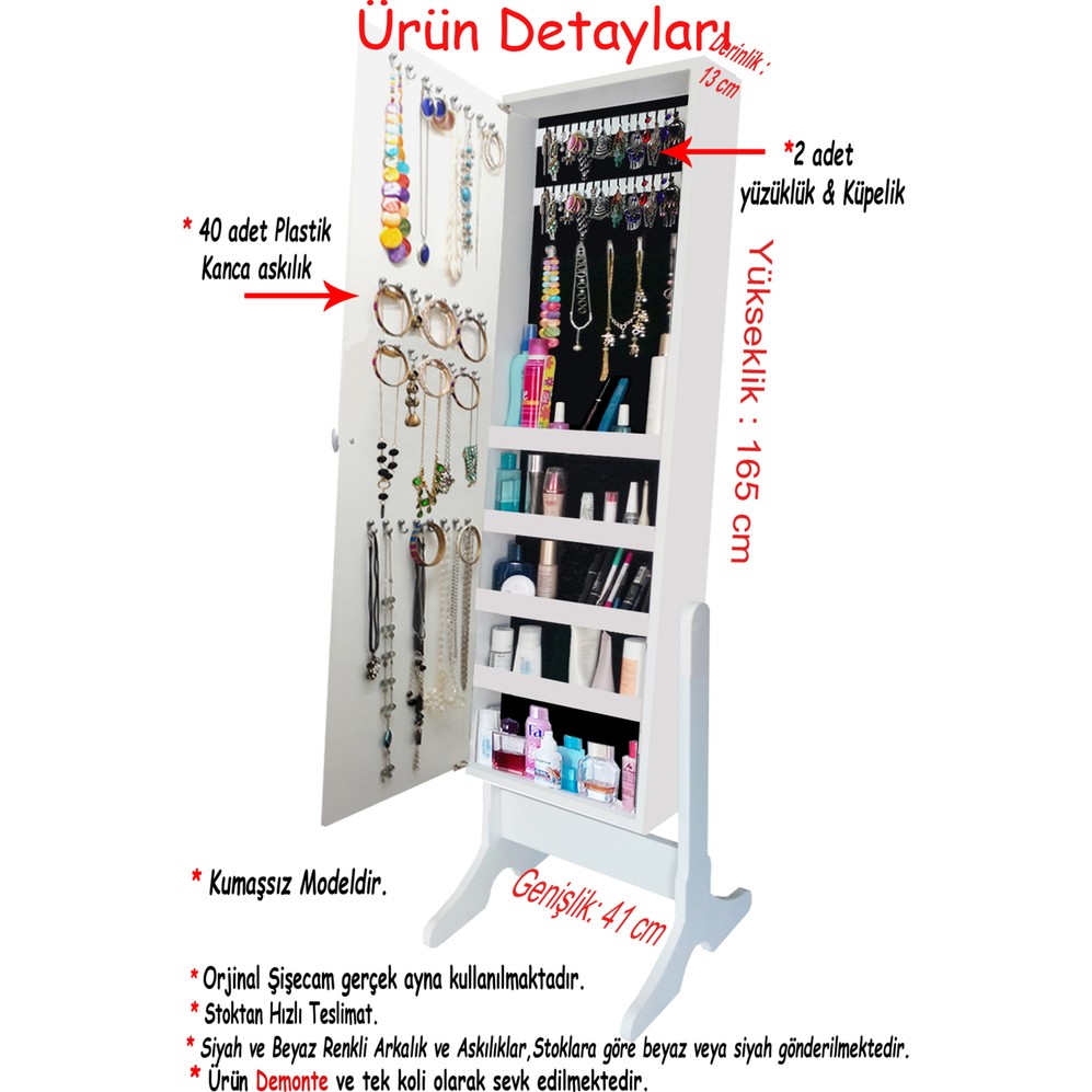 First Mobilya Number One – Demonte – Çok Amaçlı – Ayaklı – Aynalı Hediyelik Çok Amaçlı Takı Dolabı – Beyaz