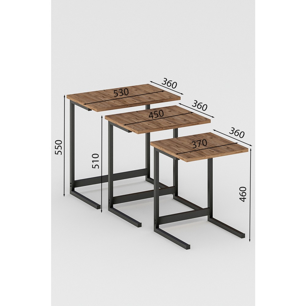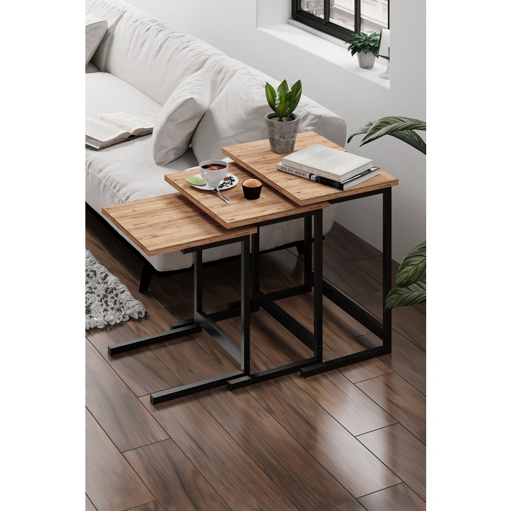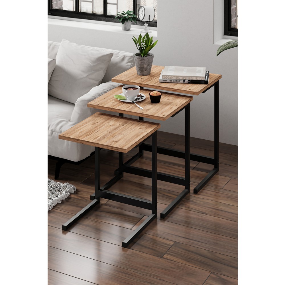 Atlantik Çam Renkli Zigon Sehpa Ev dekorasyonunuz için şıklık ve işlevsellik arayanlar için ideal bir seçenek! Atlantik çam rengi ve modern tasarımıyla bu zigon sehpa, yaşam alanınıza sıcaklık ve zarafet katacak. Ürün Özellikleri: Boyutlar:Genişlik: 37-45-53 cm / Yükseklik: 46-51-55 cm / Derinlik: 36-36-36 cm. ; Malzeme:18 mm kalınlığında 1. sınıf suntalam ve 20×20 mm metal profil ayaklar ile dayanıklı ve uzun ömürlü kullanım sağlar. ; Renk ve Kaplama:Metal aksam, çizilmelere dayanıklı statik epoksi-polyester mat siyah ile kaplanmıştır. ; Kurulum:Ürün demonte olarak gönderilir ve kurulum için gerekli tüm parçalar ile basit kurulum şeması sağlanır. Paket içerisinden çıkan alyan anahtarı ile hiçbir şeye ihtiyacınız kalmadan kolayca kurabilirsiniz . Parça numaraları ve kurulum şemasıyla kolayca monte edilebilir. ; Teslimat ve İade Politikası:Kargonuz teslim edildiğinde, ürünün paketinde deformasyon veya zarar görebilecek bir durum varsa, kargo görevlisi ile birlikte paketi açarak ürünlerinizi kontrol etmeniz önemlidir. Hasar durumunda kargo yetkilisinden tutanak tutmasını isteyin ve paketi teslim almayın. Tutanak tutulan ürünler için değişim işlemi yapılacaktır. ; Ev dekorunuza modern bir dokunuş katmak ve işlevsel bir sehpa ile yaşam alanınızı düzenlemek için bu Atlantik Çam Renkli Zigon Sehpayı tercih edebilirsiniz. Sadece güzel bir dekor parçası değil, aynı zamanda kullanışlı bir mobilya parçası olarak da hizmetinizde!