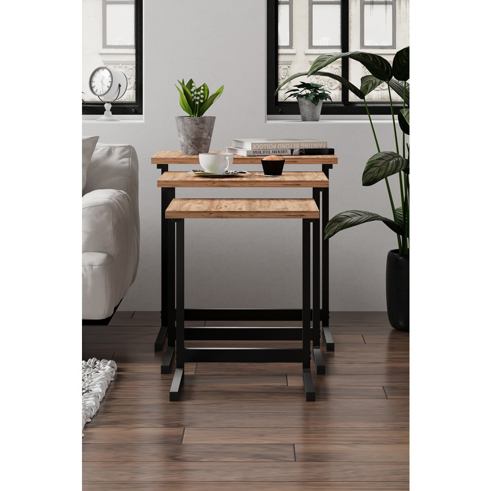 Flinder 3 Lü Zigon Sehpa Metal Ayaklı Servis Sehpası