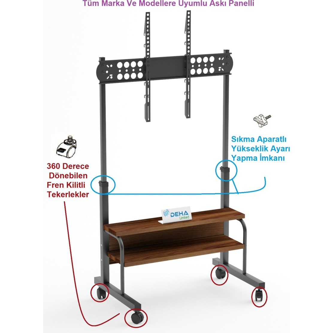 Frenli Tekerlekli Yükseklik Ayarlı Tv Duvar Paneli Tv Standı Konsol Hareketli Televizyon Ünitesi