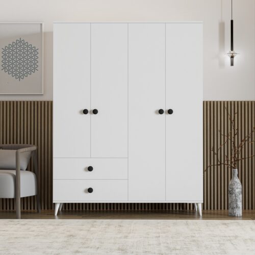 Bu gardırop, sağlam yapısı ve kaliteli MDF malzemesi ile uzun yıllar dayanıklılık sağlarken, 4 mm kalınlığındaki arka paneli ve zarif desenlere sahip kapaklarıyla estetik bir görünüm sunar. Yumuşak kapanan kapak mekanizması sayesinde sessiz ve konforlu bir kullanım sağlar. İç bölmelerdeki askı ve raf alanları, kıyafetlerinizi ve aksesuarlarınızı düzenli bir şekilde saklamanızı mümkün kılar.