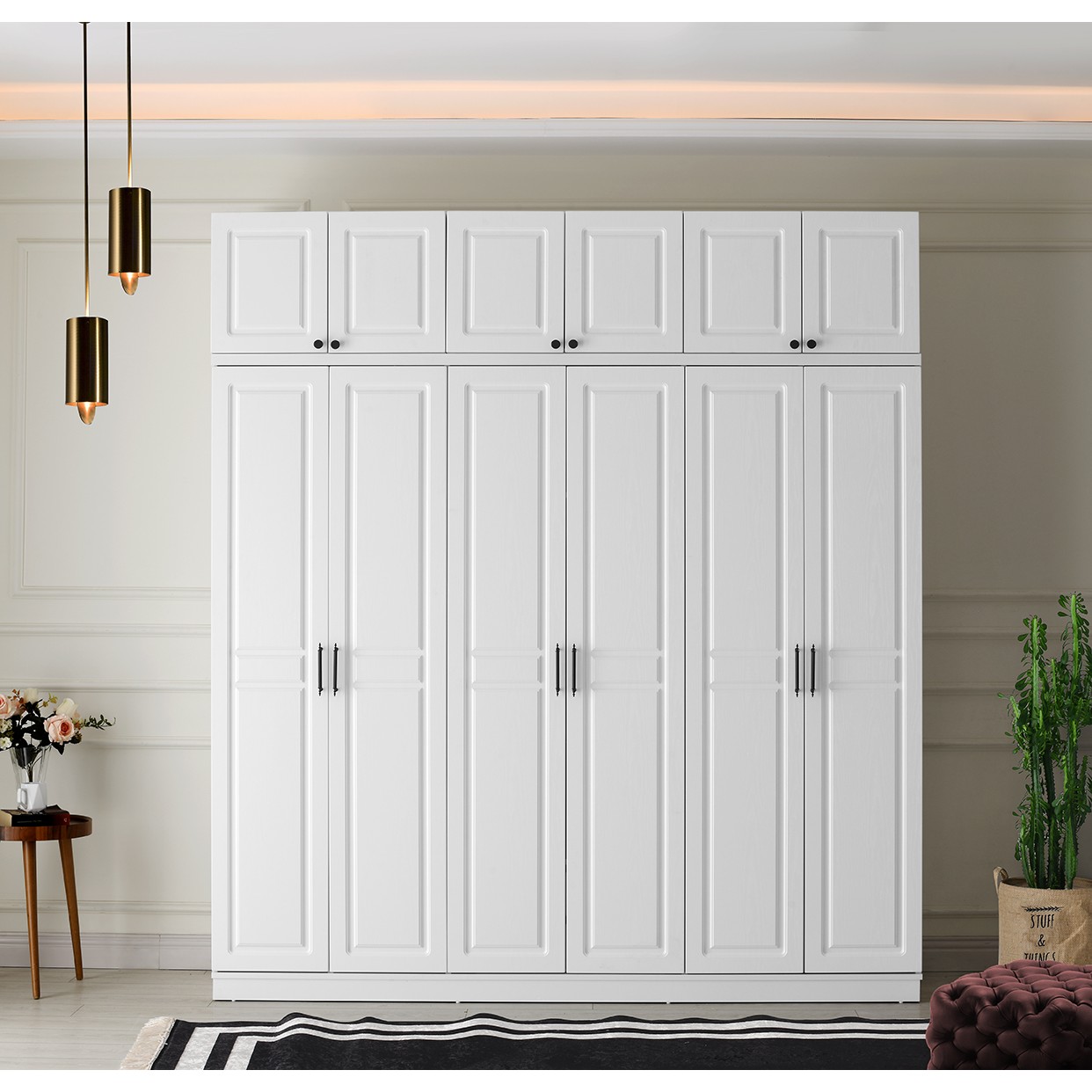 GuneyStore Ücretsiz Montaj – %100 MDF Sport 6 Kapaklı Yüklüklü – Beyaz Gardırop – MDF Dolap – Elbise Dolabı