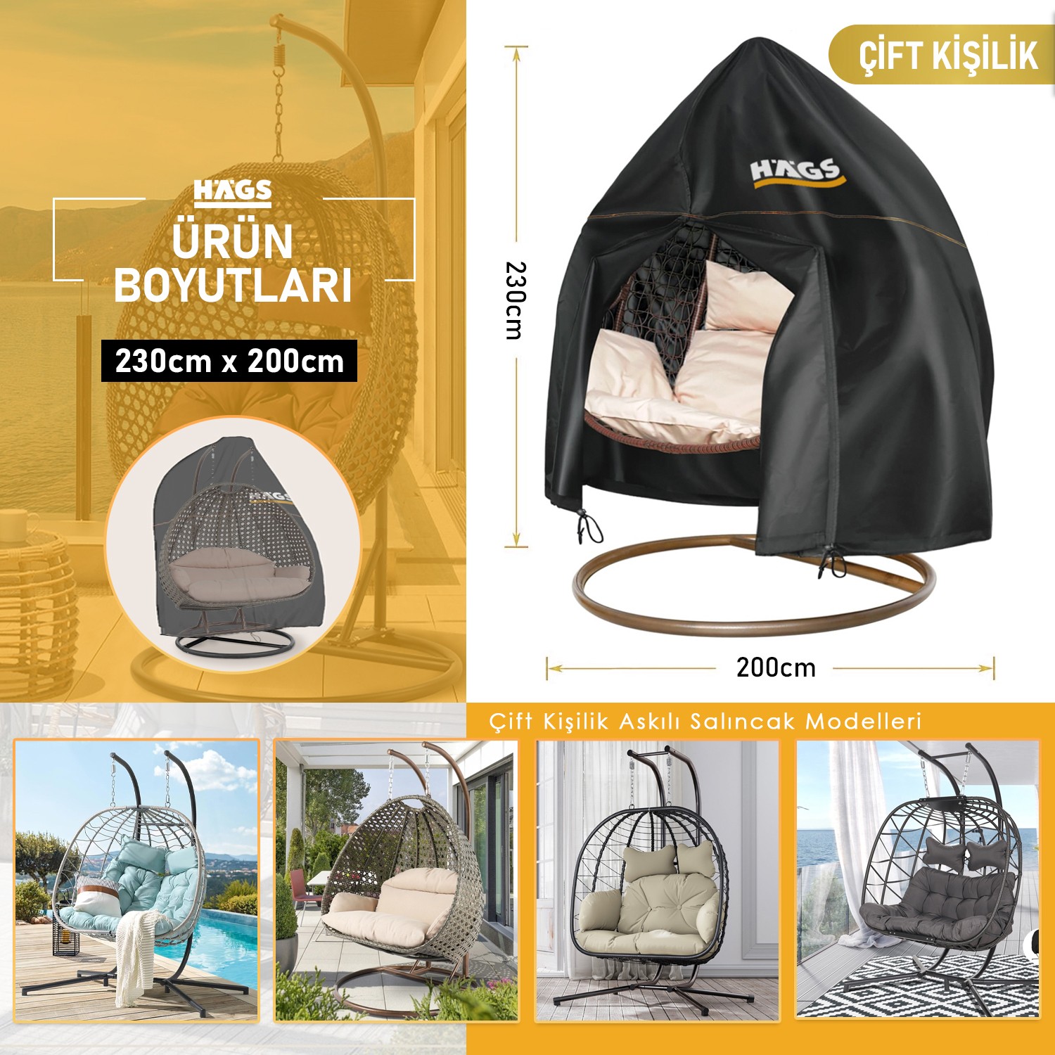 Haegs Bahçe Salıncağı Örtüsü, Rattan Salıncak Hamak Koltuk Koruma Kılıfı – Çift Kişilik, 230X200CM