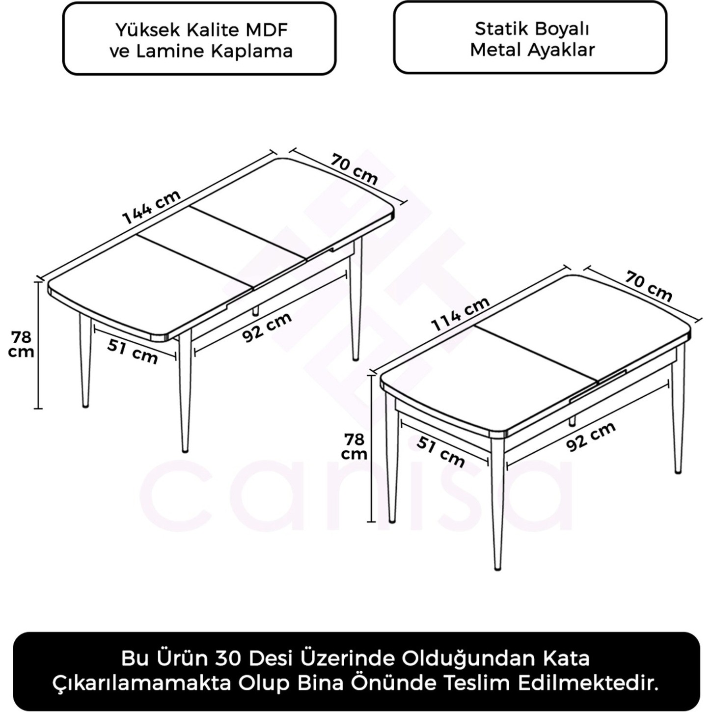 PAKET İÇERİĞİ: 1 ADET 70×114 AÇILABİLİR HAN SERİSİ MUTFAK MASASI