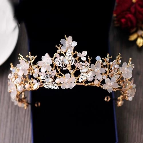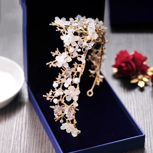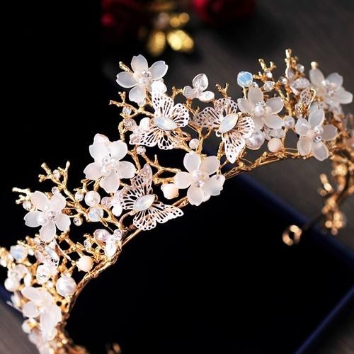 Avrupa Yüksek Kalite Gelinler Altın Tiara Taç Kelebek Çiçek Düğün Saç Aksesuarları Gelin Çiçek Saç Takı | Saç Takı | Çiçek Saç Jewelrybride Gold
